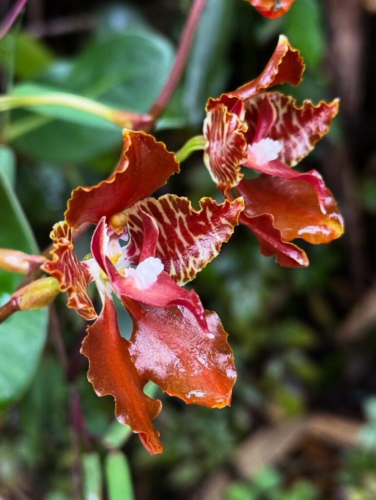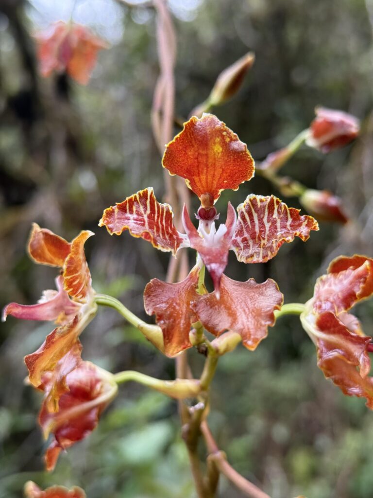 The trail had a really gradual up and occasional Inca tunnels. Those were short, but very cool. In total we saw 3 Inca ruins on the way to camp. We saw the best flowers of our entire hike; there were so many types at all levels of the jungle. Some were on the ground barely above the moss, others were on vines hanging over the path, and some were even higher up almost hidden in the leaves. Many trees were covered in thick mosses, too, reminded us of Olympic National Park in Washington.