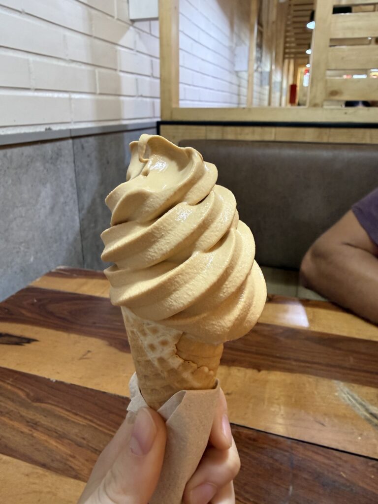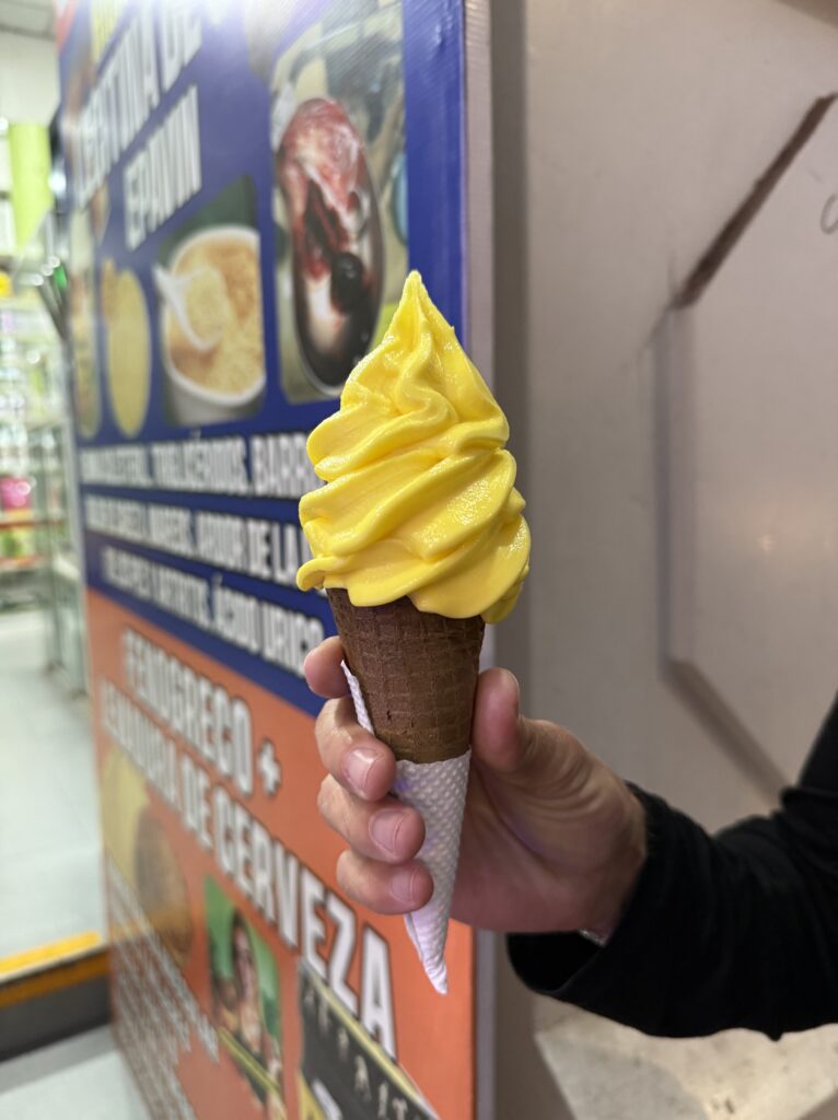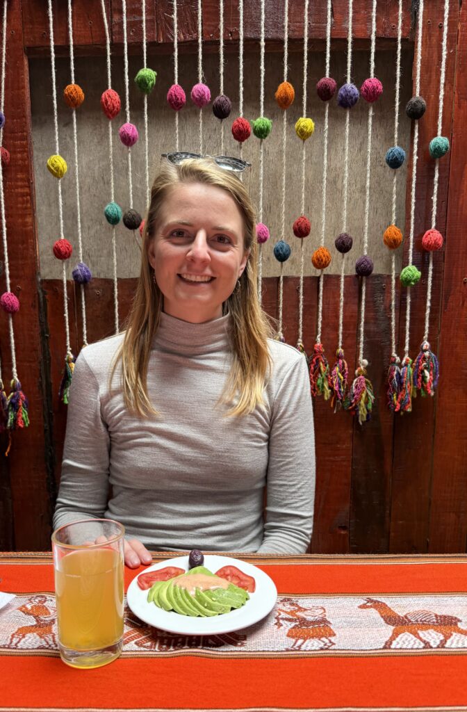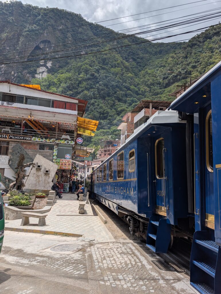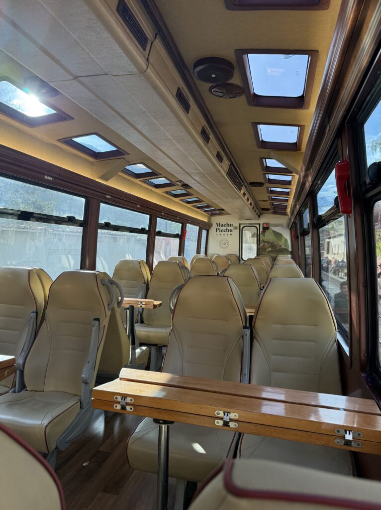 Lunch was at the same burger spot before heading to the train station. There were many scenic trains with lots of windows heading to Ollantaytambo. The train ride was about 2 hours long and the process to board was pretty smooth. Our train car was us and about 40 people all 50+ in a group tour with matching T-Shirts. They were super energetic and seemed to be having a hoot together. The views were of jungle, farms, cacti, flowers, berries, corn fields, ruins, mountains, and some glaciers in the distance. Once we arrived we had to wait about 20 minutes for the next train, which had the rest of the people sharing our company’s shuttle back to Cusco. For dinner we had passion fruit soft serve ice cream and amazing beef hearts on a stick from a food cart. After that we were so happy to check back into our hotel and sleep in. It was an incredible 8 days of hiking, that’s for sure.