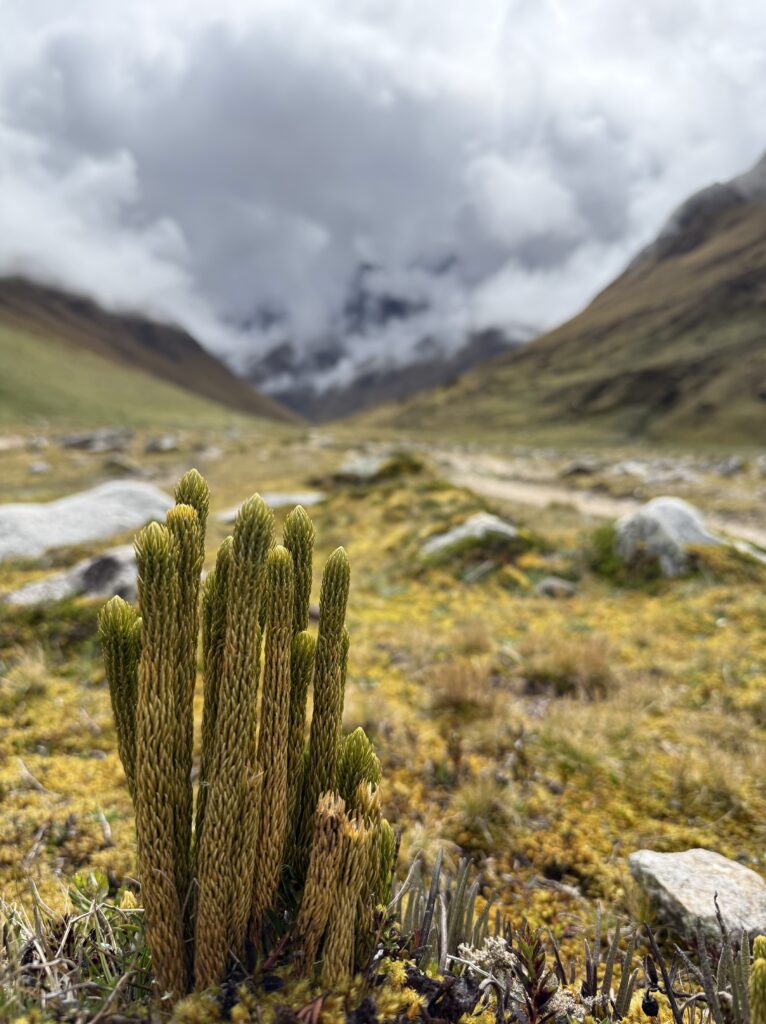 After breakfast we headed to Challacancha which is where the trailhead was. The hike started at 7:30am and we arrived to Soarypampa Sky Camp at 9:30am. The trail followed original and renovated Inca canals used for directing water. There were some plants, but nothing that interesting (yet). Once at camp we left our bags to do a day hike up to Lake Humantay. The hike up was gradual with views of the surrounding mountains and glaciers. The path was incredibly busy since there were both overnight hikers like us and people who were only doing the lake as a day trip. Some people were not well adjusted to the altitude and opted to ride horses up, making the trail crowded.