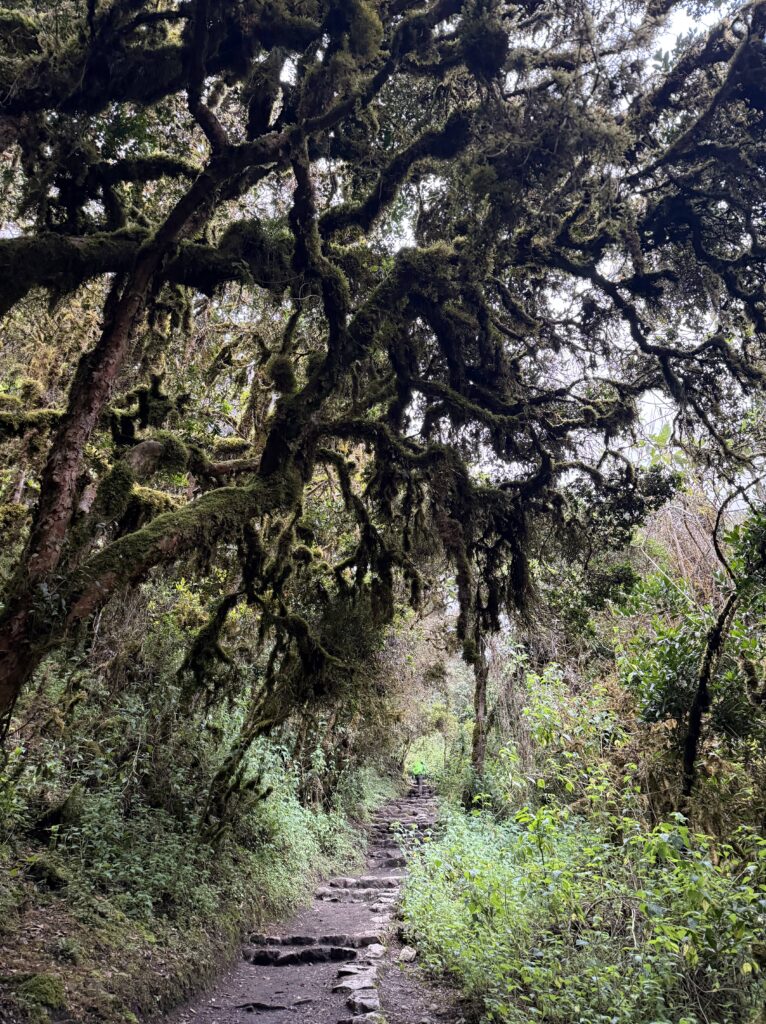 Day 5 was the hardest day on the Inca Trail with lots of up. For breakfast we got peeled soft boiled eggs in a tomato and onion sauce. It was super good, definitely the best breakfast of the hike. It came with a price, however; Nick’s farts were deadly. I had to have him hike minimum 6 feet behind me at all times for the first pass. The first pass was long and gradual. It started with going through the jungle with lots of moss, flowers, and other hikers we passed. I don’t know how it happened, but our group was the fastest group on the Inca trail so we would usually passed all other groups in the first hour even though we started last.