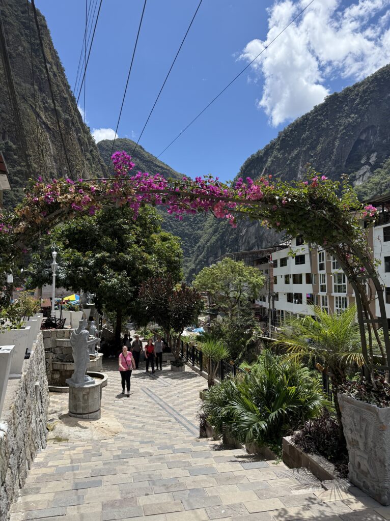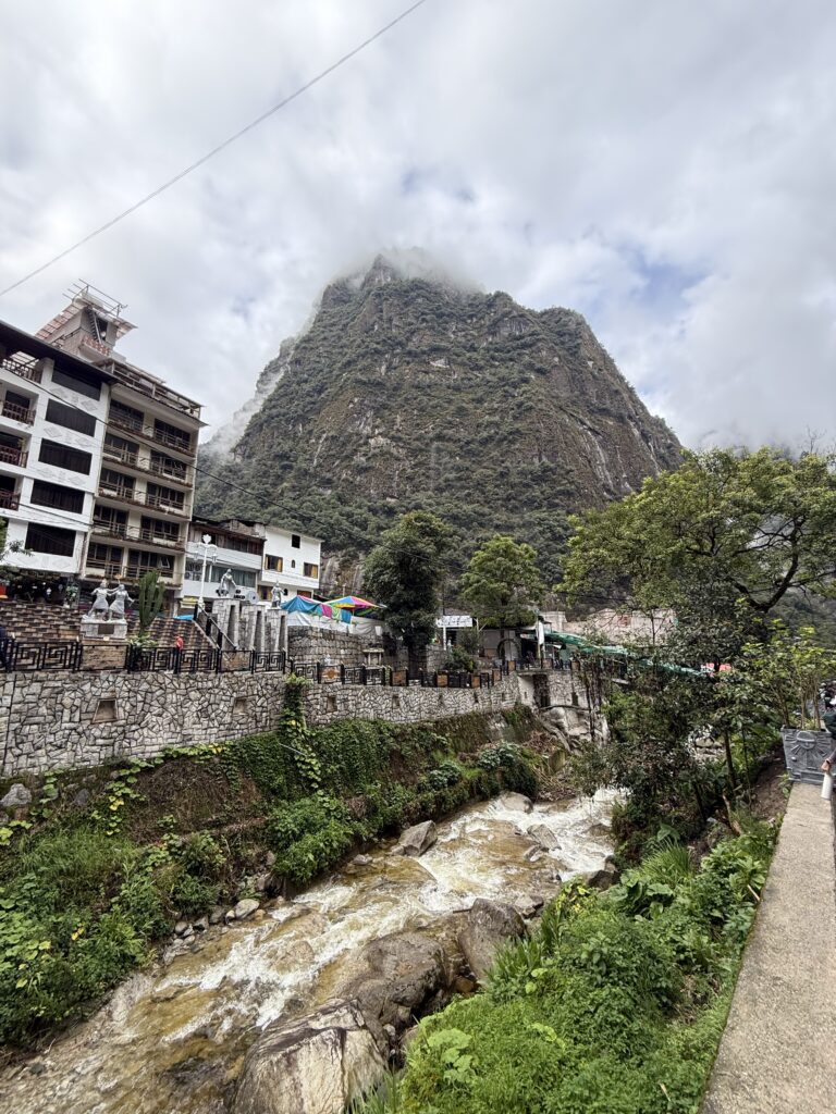 By 10:25am it was time to catch our bus down to Aguas Calientes, the nearest town to Machu Picchu. The shuttle was about 30 minutes of switch backs down the steep mountain. We said goodbye to our guide and Jason, who would both be taking the train and shuttle back to Cusco that afternoon. I had booked us a hotel in town so we could have an extra day in Machu Picchu for additional hiking. For lunch we had some amazing burgers from Fruti Rolls, with plantain and eggs on top. Nick had a frozen limeade and I had a frozen passion fruit drink. They made them by just blending the fruits with sugar and ice. They were so refreshing.
