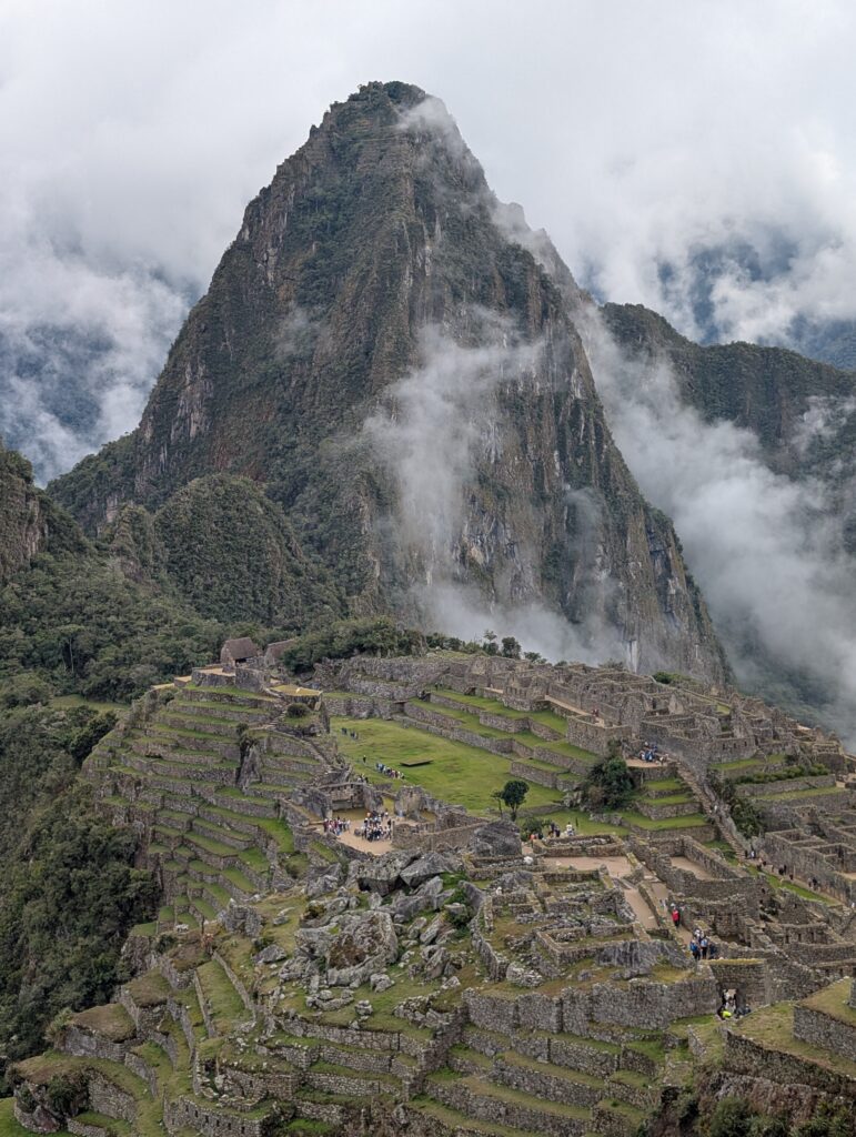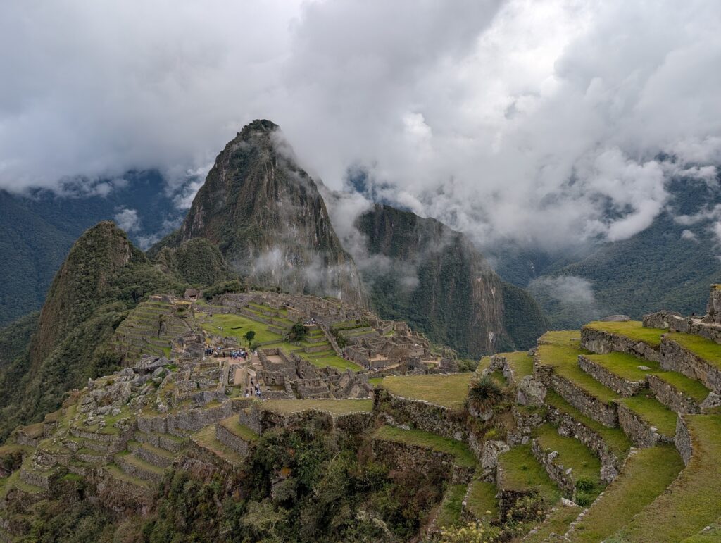 Circuit 3-B went inside Machu Picchu. The fog cleared once we were down inside, which was great because we could see all the ruins perfectly. The ruins felt similar to many others we had been to, just much bigger and with more buildings. To be honest, I think the surrounding mountains are what made the place feel more special and beautiful rather than the ruins themselves. I think some of the ruins we saw on the trail were more interesting. One big downside of Machu Picchu is the crowds, wow, so many people! It was very cool to see another Wonder of the World, though. We enjoyed our time there a lot.