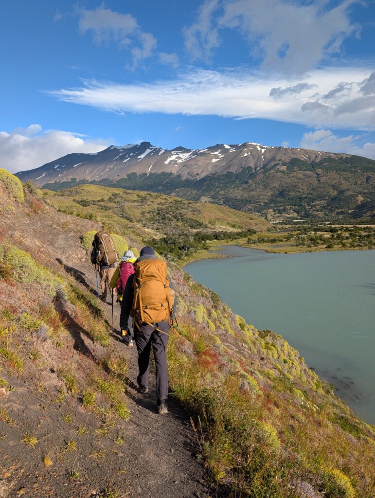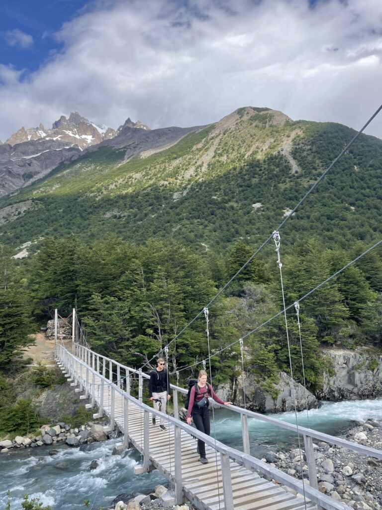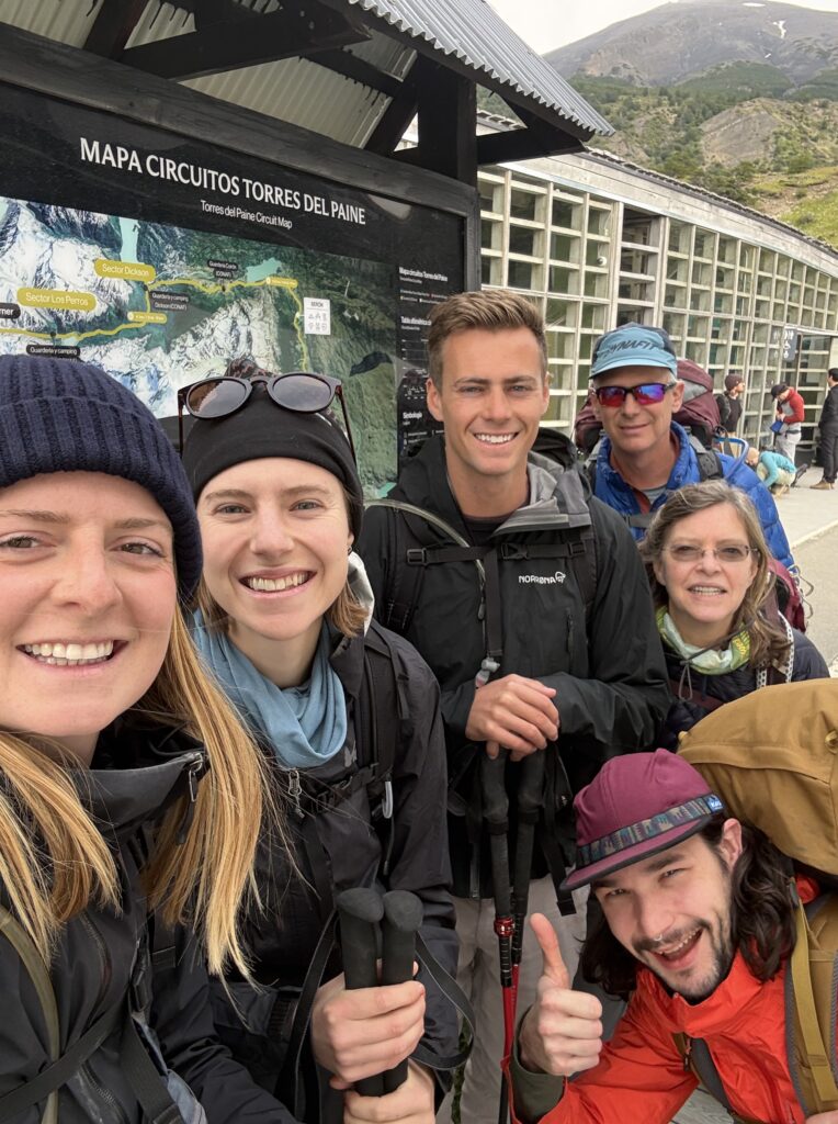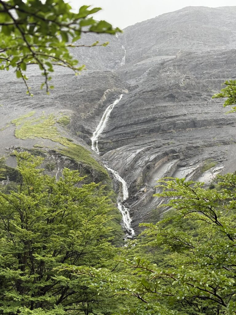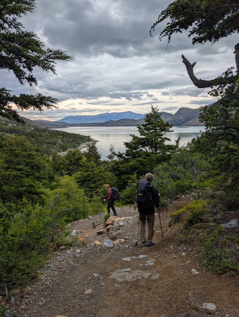 We left camp at 8:50am and arrived to Camp Central at 3:40pm. The day was 16.3km and 639 meters in elevation gain. I think it wasn’t particularly long or hard compared to some of the other days, but as a group we felt tired. The views were nice all the way with much of the hike being along a lake. The weather was on and off rainy but we didn’t mind. That part of the trail was incredibly busy with hikers going both directions. We figured once we were on the ‘W’ part of the hike it would be. We crossed over a long suspension bridge, ate lunches in the rain, and enjoyed a section of the trail on a pebble beach. Once we arrived at camp we enjoyed our welcome drinks, dehydrated dinner packs, and an early bedtime.