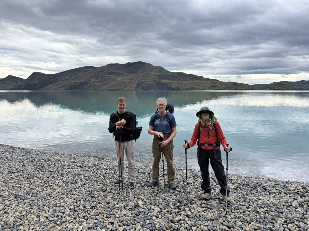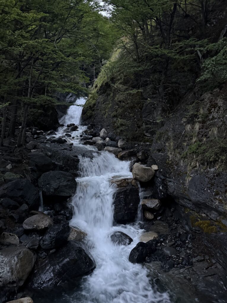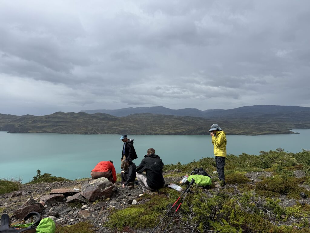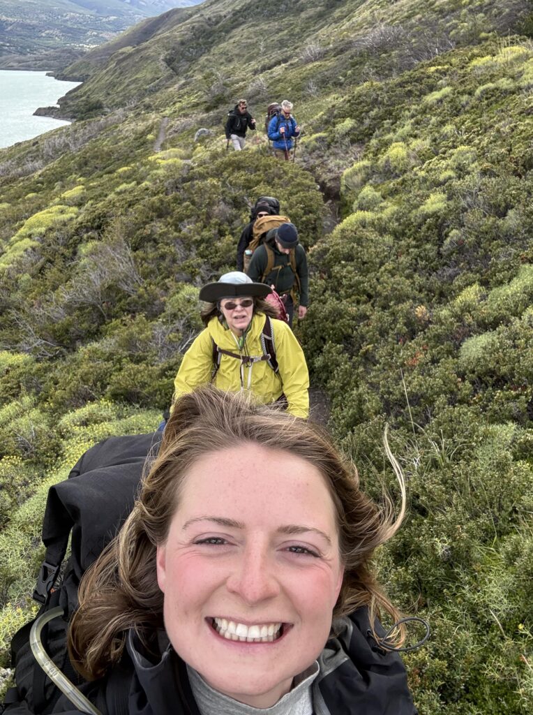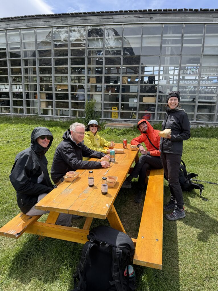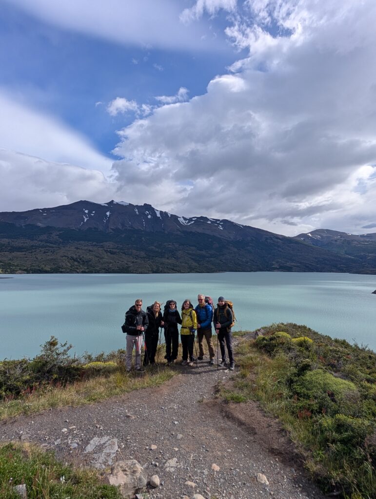 We left camp at 8:50am and arrived to Camp Central at 3:40pm. The day was 16.3km and 639 meters in elevation gain. I think it wasn’t particularly long or hard compared to some of the other days, but as a group we felt tired. The views were nice all the way with much of the hike being along a lake. The weather was on and off rainy but we didn’t mind. That part of the trail was incredibly busy with hikers going both directions. We figured once we were on the ‘W’ part of the hike it would be. We crossed over a long suspension bridge, ate lunches in the rain, and enjoyed a section of the trail on a pebble beach. Once we arrived at camp we enjoyed our welcome drinks, dehydrated dinner packs, and an early bedtime.