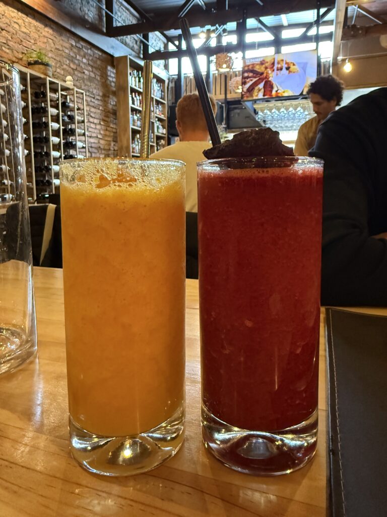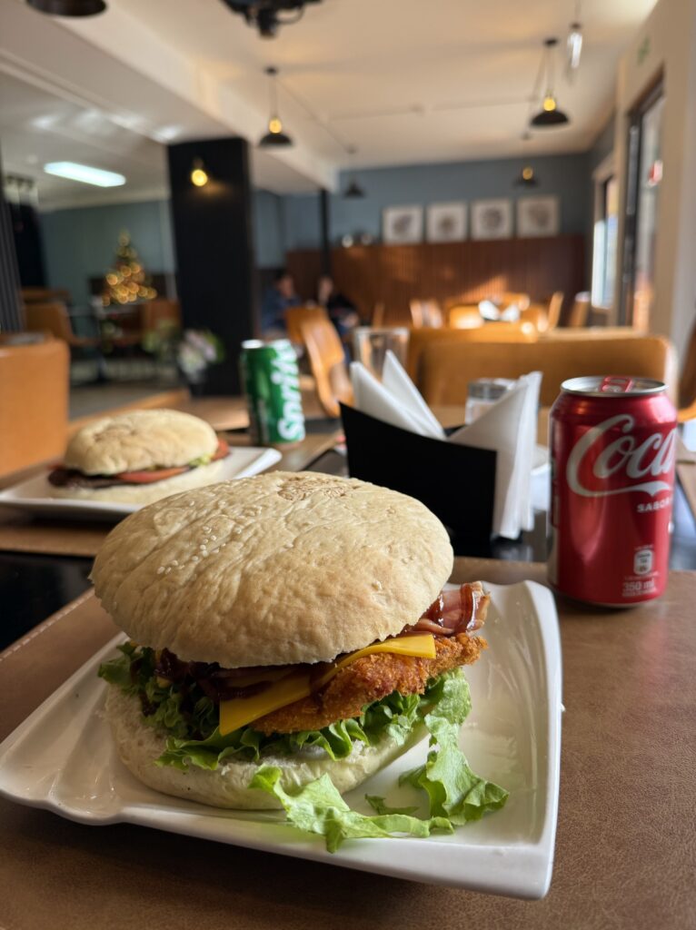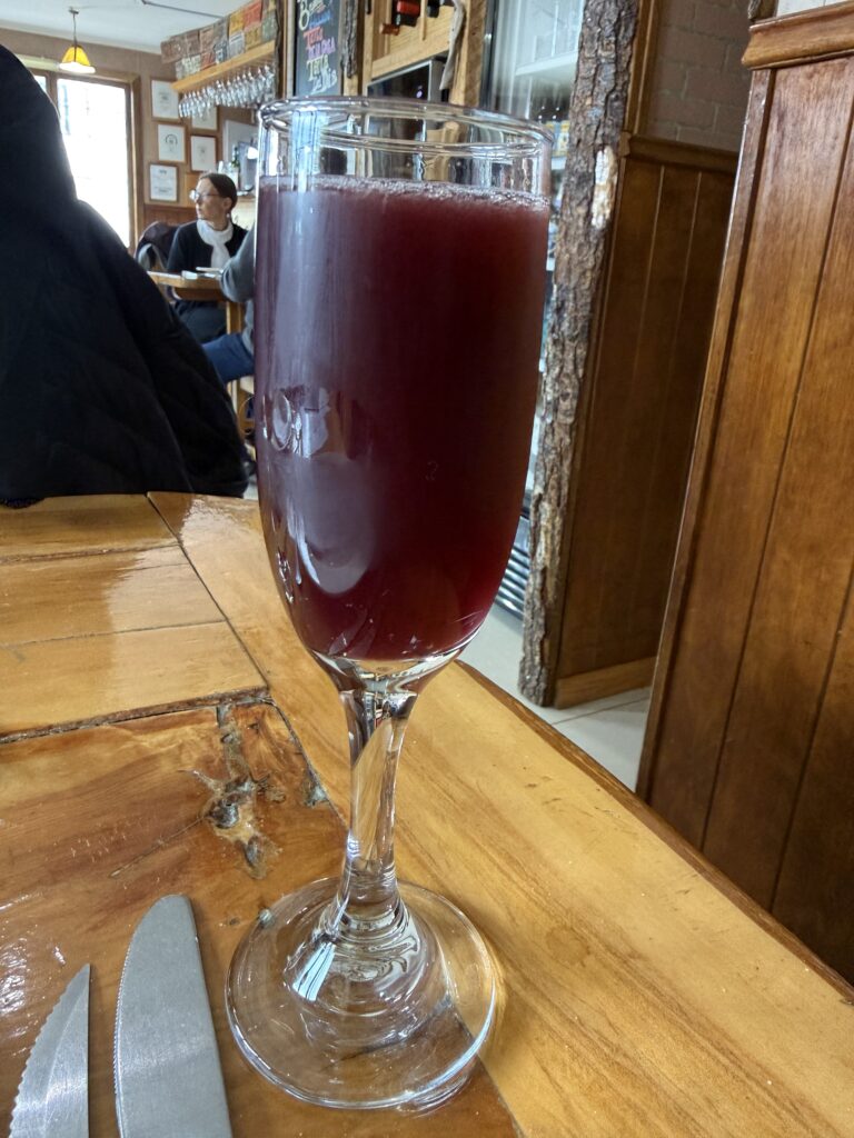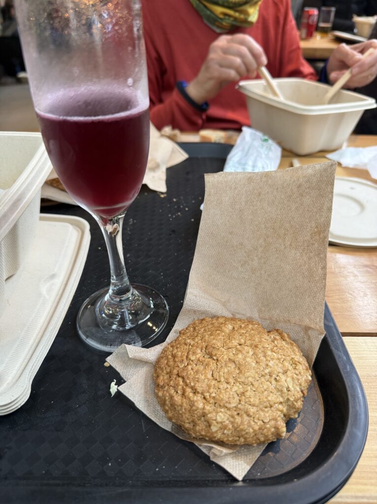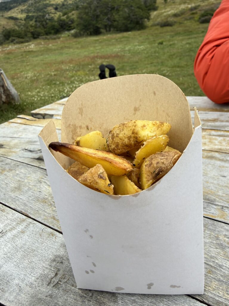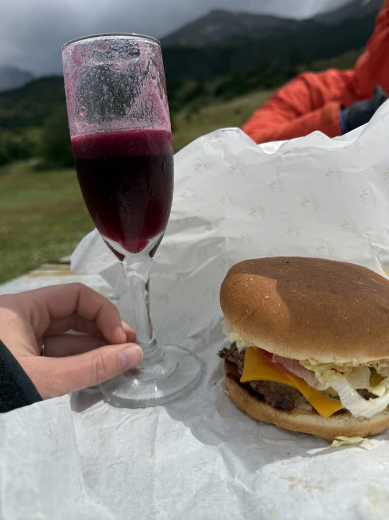 As we hiked a large rainbow formed over the field of daisies. I noticed more of a cool flower on the way out than I did on the first day. Everyone assured me that they saw them on the way in, too. At 1:00pm we made it to the Welcome Center where we enjoyed delicious chicken burgers, chicken ciabatta sandwiches, beer, and calafate juice from the cafe and food truck. That really hit the spot after such a disappointing turn of events. It was the same journey back to town with a shuttle to the bus area, waiting for our late bus to show up, then bussing to town. Since it was Christmas Eve, lots of restaurants were closed. We ended up going back to El Brisket due to my painful hunger levels. Apparently I was the only hungry one so the group was less enthusiastic. I have no idea how these Ralston’s can go so long without eating, it’s like a super power I swear.