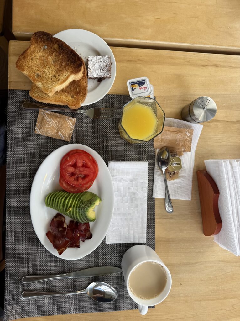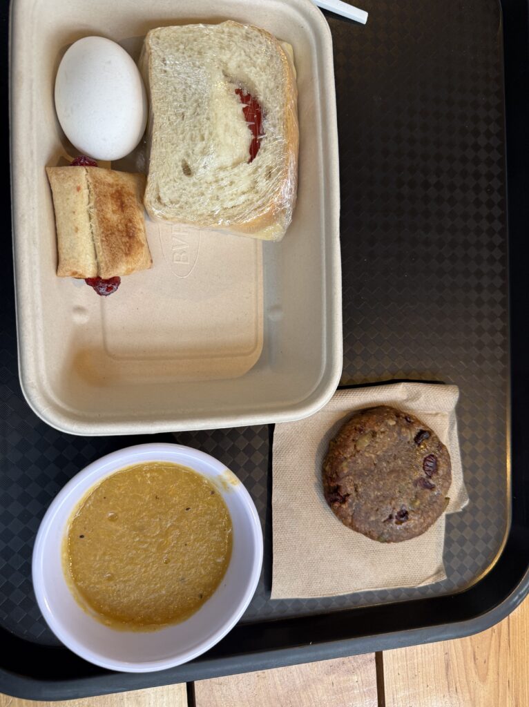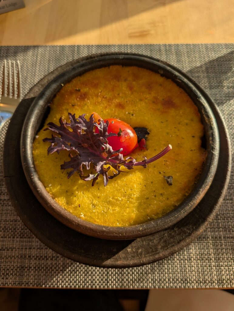 We woke up to a beautiful day at Camp Frances. Our breakfast was a cheese and tomato sandwich, boiled egg, a puff filled with raspberry jam and cheese, apple sauce with passion fruit, and a ‘cookie’ that gave me flashbacks of my moms’ phase of cooking where she refused to use any normal ingredient. It’s safe to say I did not enjoy the world’s healthiest cookie. There was one brief heart attack moment where the hot chocolate bag I had with me in the bathroom went missing. It turned out Emily thought I forgot it in the bathroom and took it back to the tents. False alarm!