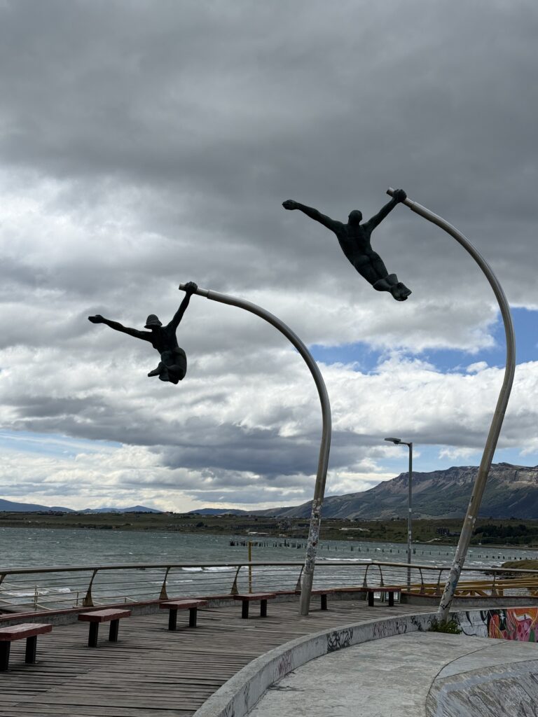 That day was a relaxing day we allocated nothing to just in case anyone was jet-lagged and to get some supplies for our upcoming hike. We walked along the ocean where there was a nice walking path that went all the way from our hotel into town. Along the path were various large sculptures. In the ocean were many different types of beautiful birds, some of which we had already been seeing in Ushuaia. My favorite were the swans with the black necks. In town we ate at El Brisket, which unsurprisingly had great brisket. Some of us choose to get the healthy looking juices. Wow what a mistake that was. Mine was the beet juice with ginger and it tasted like licking the ground. Nick had to help me drink half of it. We balanced the meal out with some giant red velvet cookies.