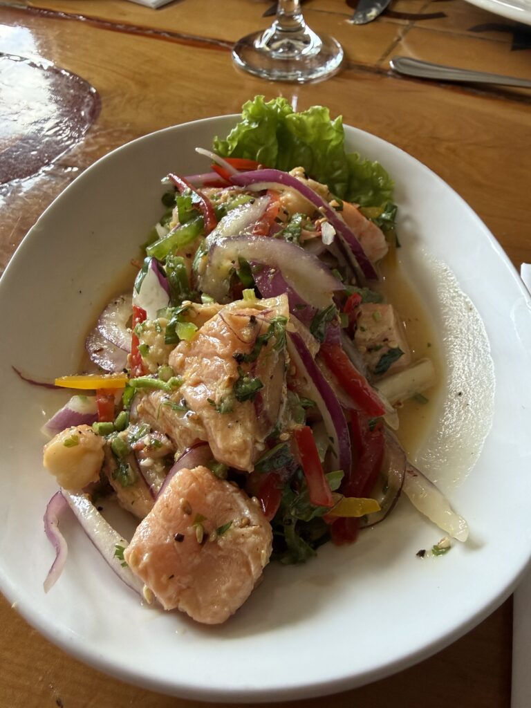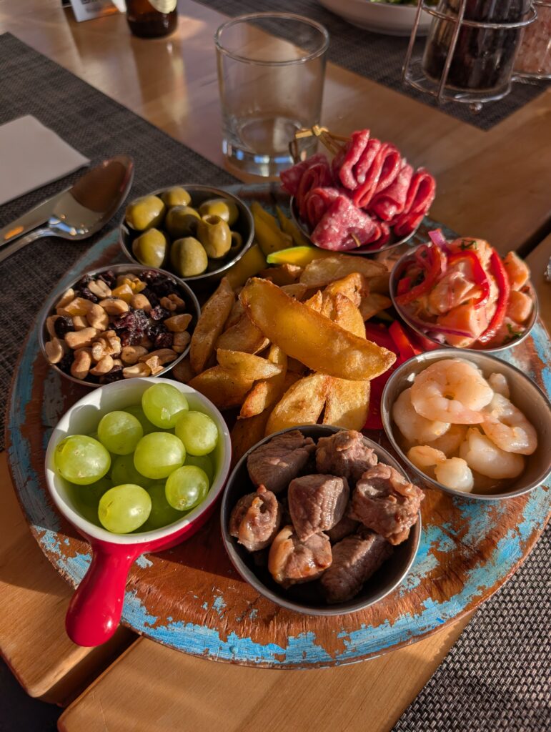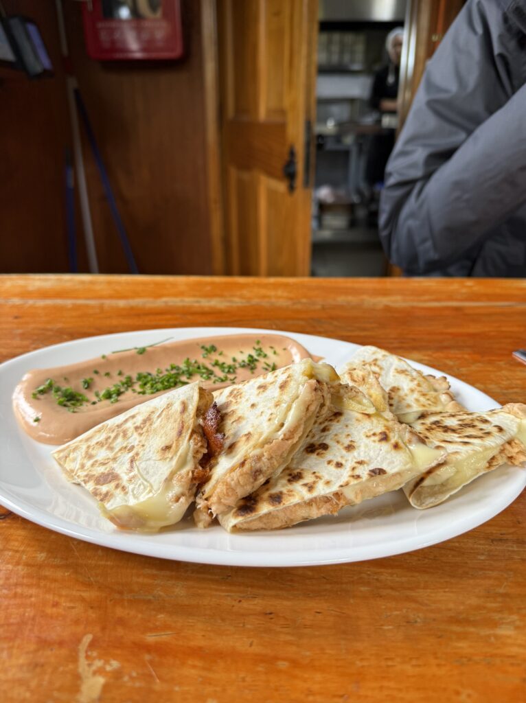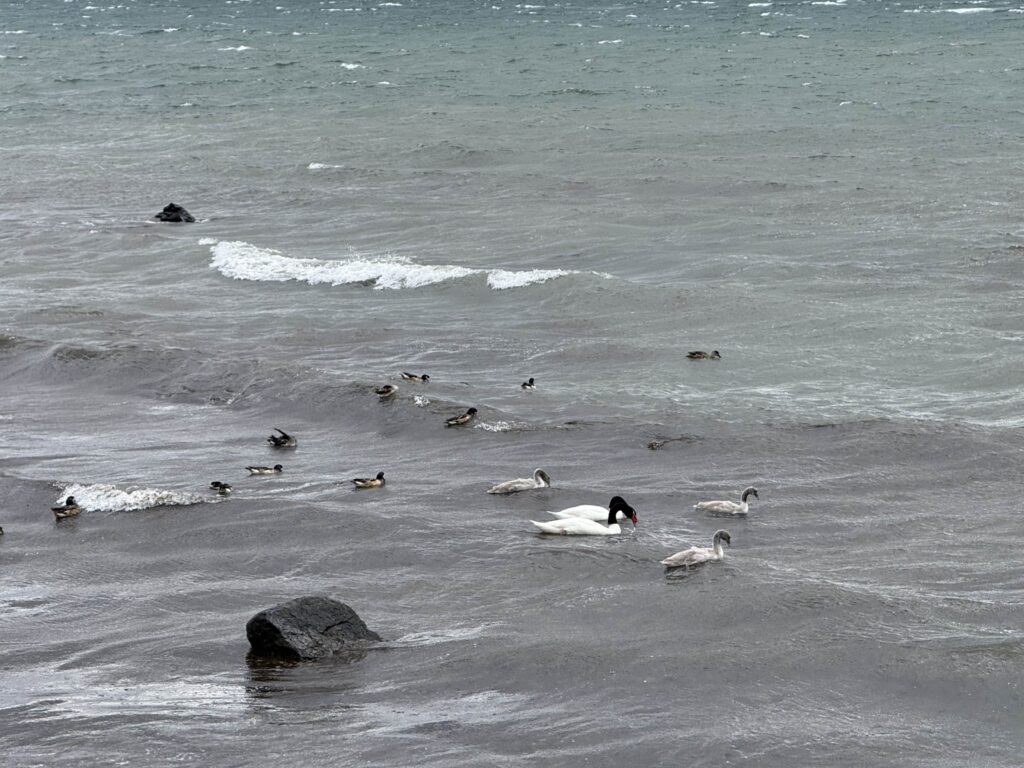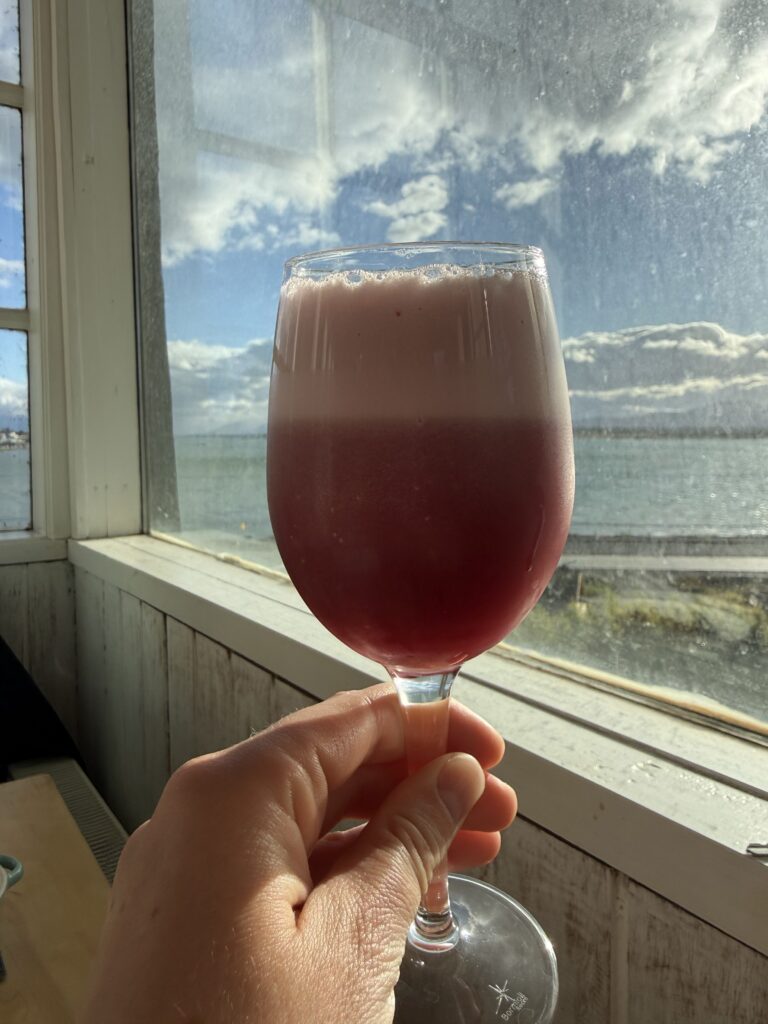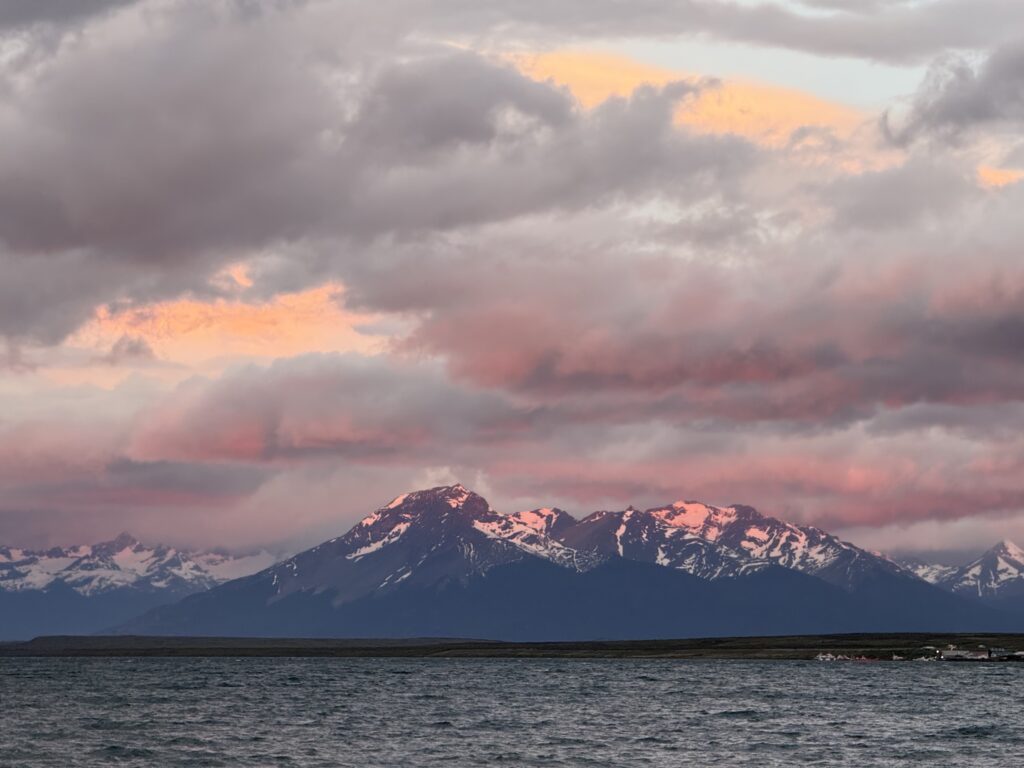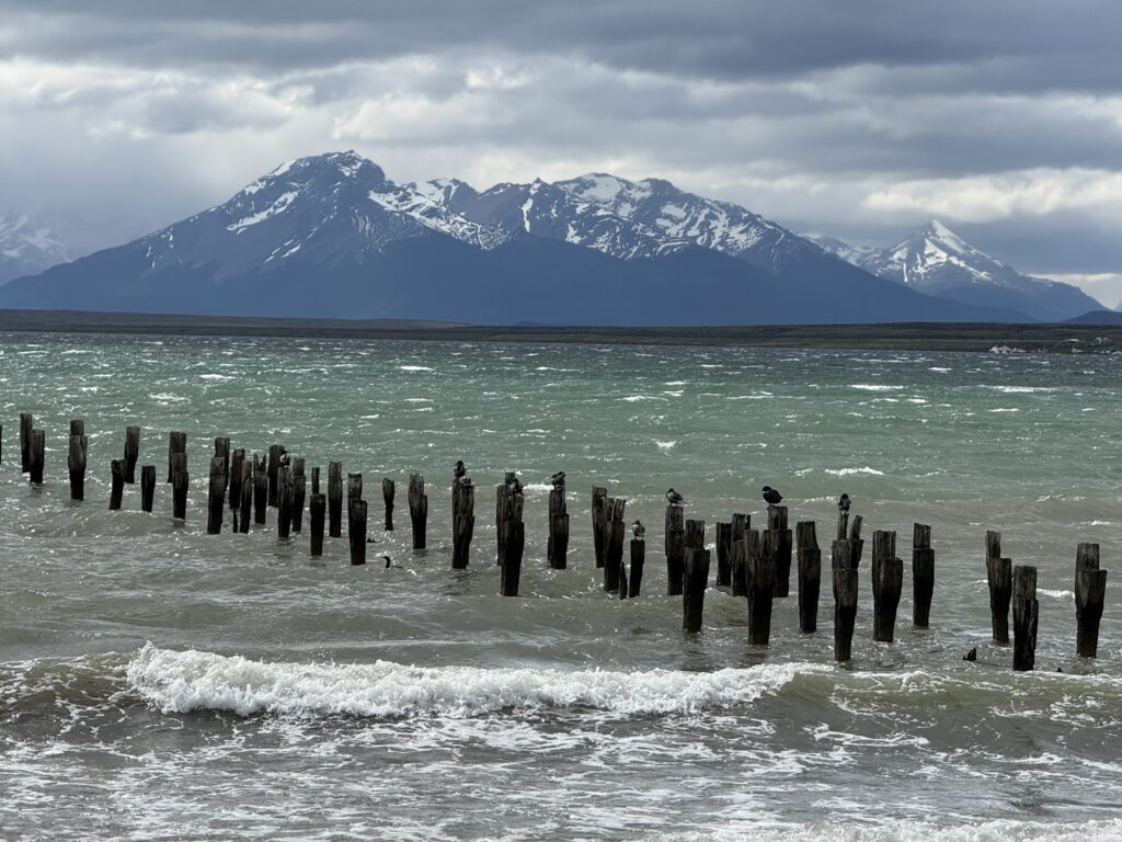 For dinner we ate at Cafe Kaiken in town. The calafate sours were yummy. We all shared some salmon and shrimp ceviche for appetizers. I had the salmon ravioli. Nick got a brownie with ice cream after his meal. We both agreed that it was fine, but didn’t stand out. We walked back along the ocean to the hotel pushing through strong winds. It was a preview of what was to come.