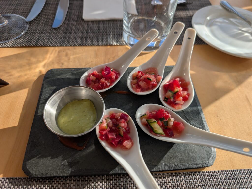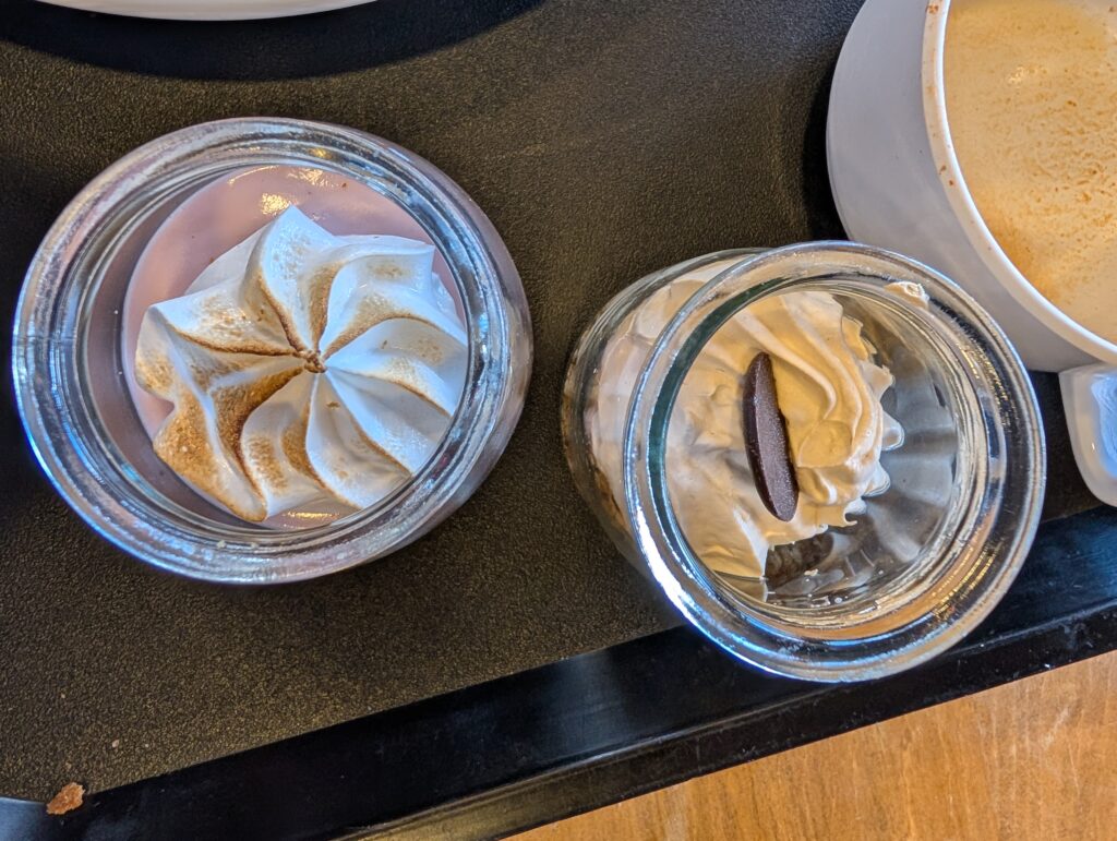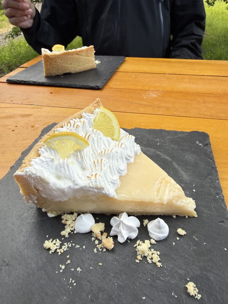 We enjoyed a snack of salmon quesadillas from the kitchen. They were so unbelievably delicious. I want to recreate them at home and I hope that they weren’t just good because of hiking. For dinner we shared some dehydrated meals. Well Gabe and I each got our own and then everyone else shared to be exact. I had the beef lasagna. Jeff and Gabe had a few beers, Deb had some red wine, and then a few of us had the lemon meringue pie for dessert from the kitchen. Everything was surprisingly scrumptious.