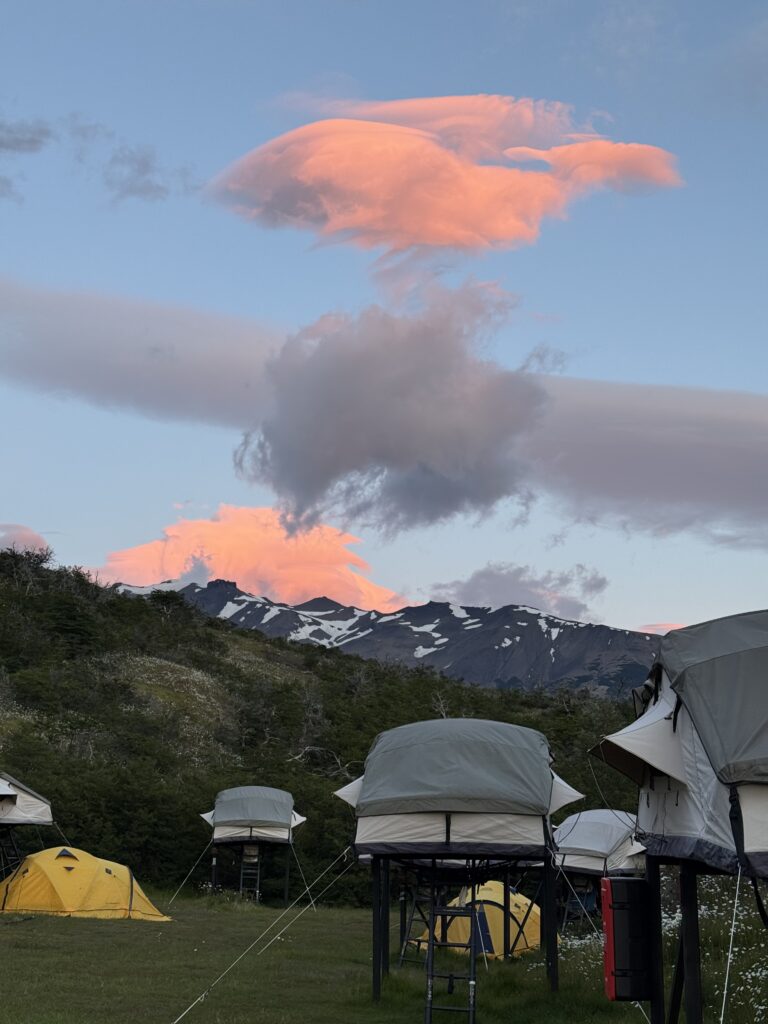 Camp Frances truly felt like glamping, wow. We had welcome drinks of local beer, wine, pisco and calafate sours. Dinner was salmon, quinoa, mixed vegetables, sauce, dill, bread, salad, and a warm oatmeal cookie. We were not expecting such fancy food while camping. I think that place must be where the expression, ‘happy camper’ comes from. In the evening our tents were super quiet even though it was windy outside. They were set up much tighter than in Seron where every gust of wind flapped our tent like a hurricane. The tents even had lamps and chargers for our phones, unreal!
