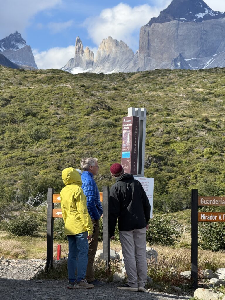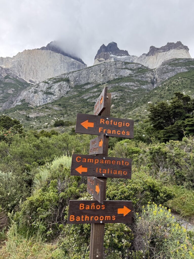 To get to the trail we first had to get to Torres del Paine National Park. We walked to the bus station where busses were pulling in and departing to the park frequently. After a couple of hours we arrived to our first stop in the park where we switched to a shuttle bus to get to the Welcome Center. We arrived about 3 hours from the start of our bussing. After a quick coffee for Gabe and bathroom for the rest of us we were on the trail. Finally, after months of planning we were off! The weather was a bit fresh, but not too windy or rainy so we were lucky.
