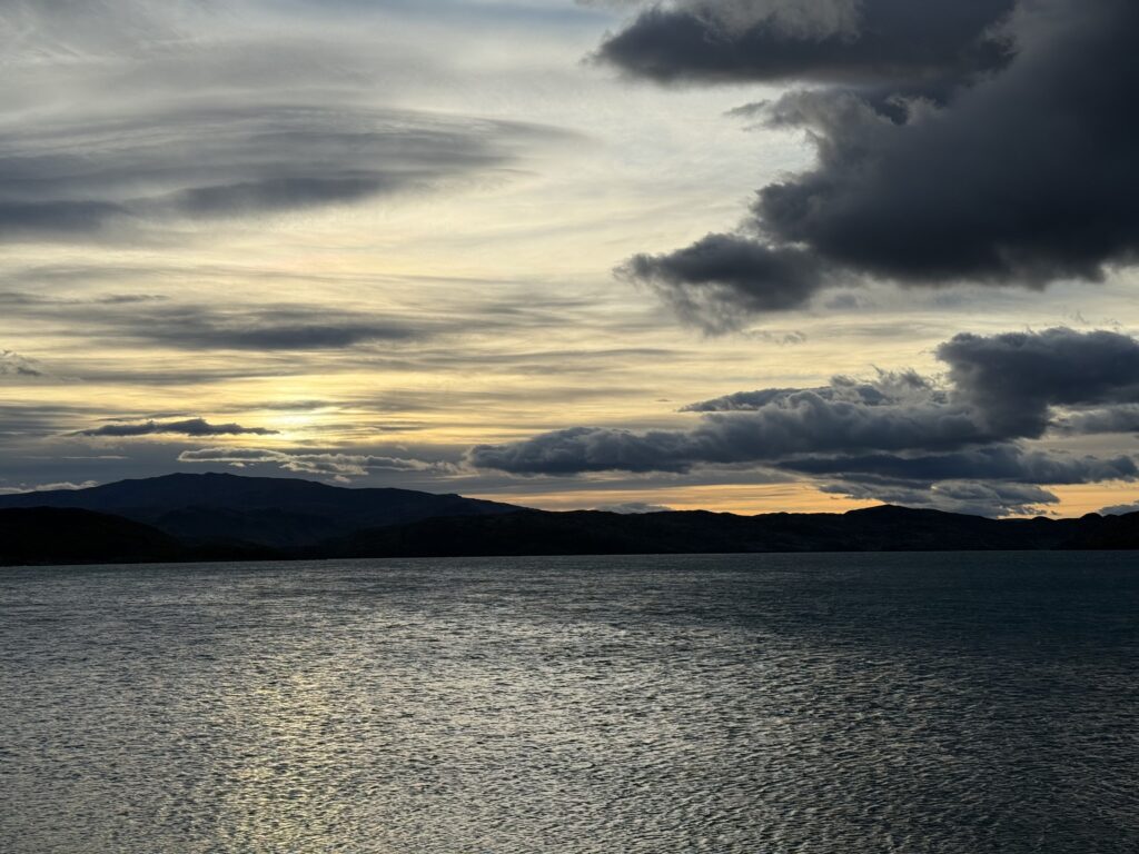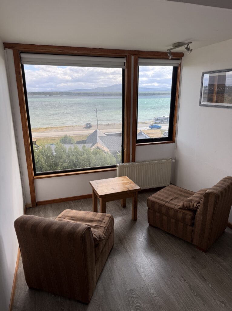 In the morning we went down for hotel breakfast and got to see our family who had all flown in to spend about 2 weeks together in Patagonia. Nick’s mother Deb, his father Jeff, his sister Emily, and her husband Gabe joined us to make a group of 6. They all had long journeys to arrive from the US with many flights. One of them (I won’t disclose who) had a horrible stomach virus of some kind and had had a particularly uncomfortable journey to Puerto Natales. Unfortunately for the group this bug would hit most of the group one at a time over the next 2 weeks. Hotel breakfast was impressive, with many baked goods, fruits, breads, eggs, and more. 5/6 of us so far uninfected enjoyed it very much.