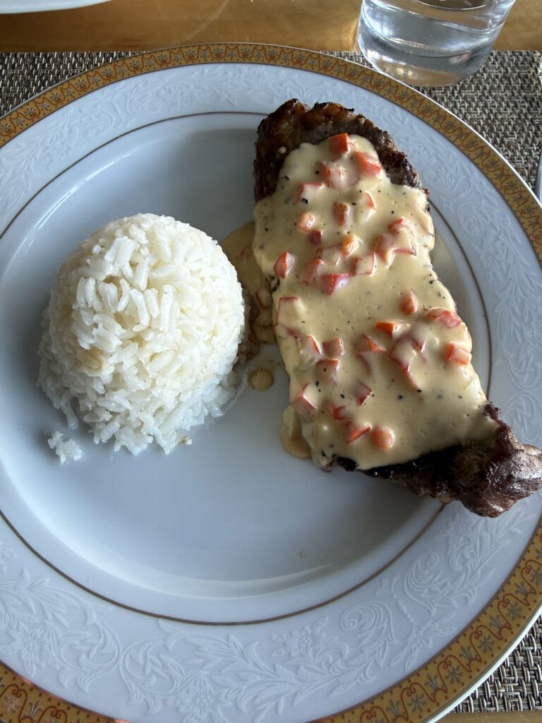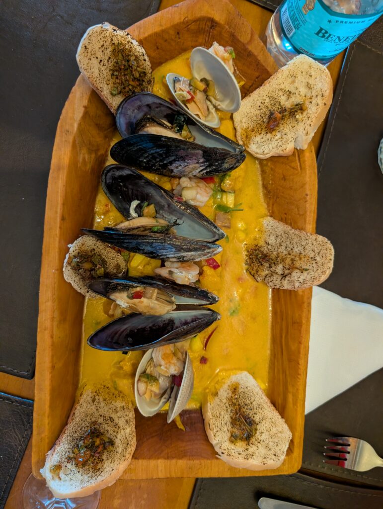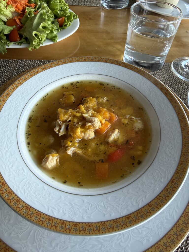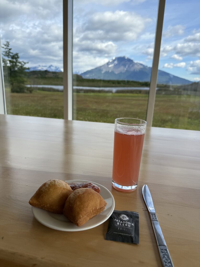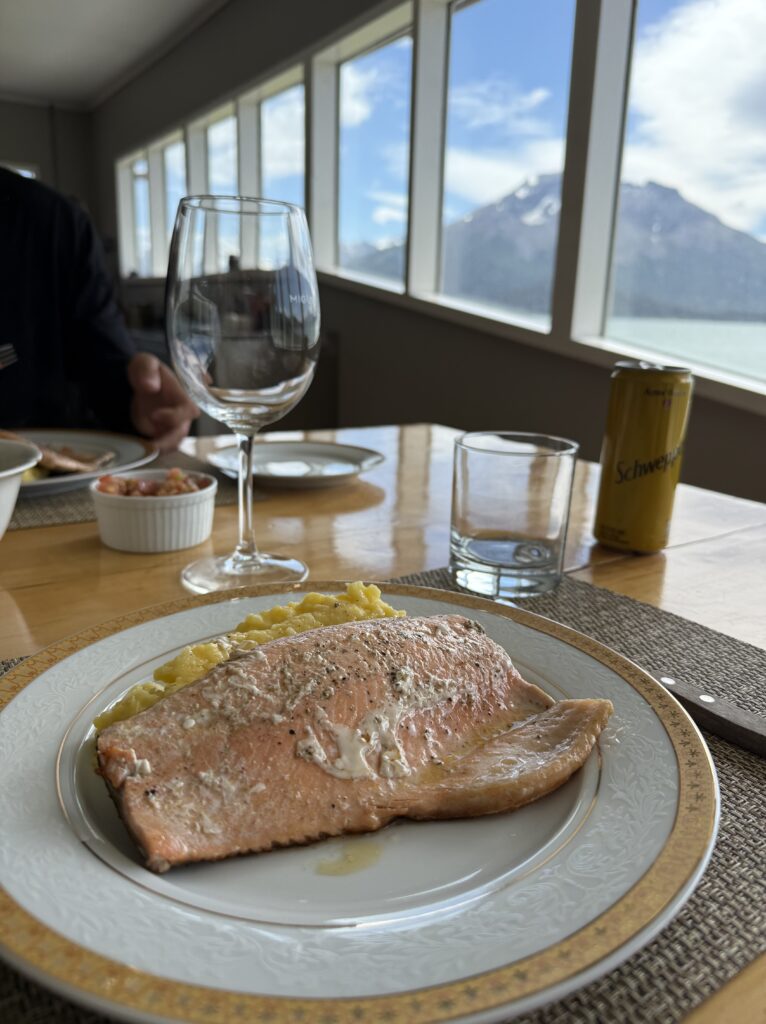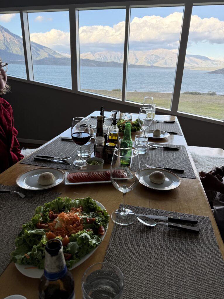 Stretching our legs felt amazing and we were welcomed inside our cabin with a beautiful charcuterie board and beverages. Our chef was Tomás’s girlfriend and she was incredibly nice. At 7:30pm it was time for our next 5 star meal. We had salad, chicken soup, steak, rice, sauce, and dessert was crepes with dulce de leche.