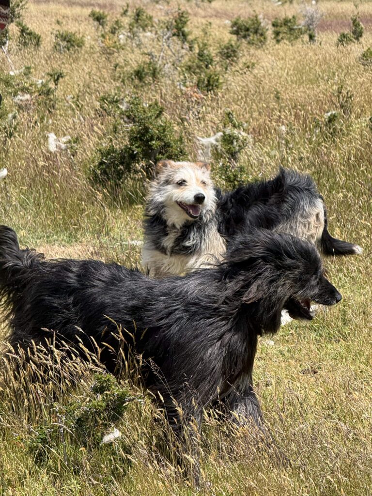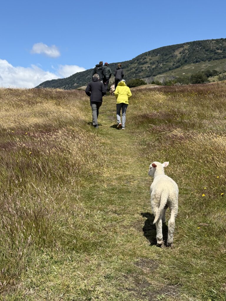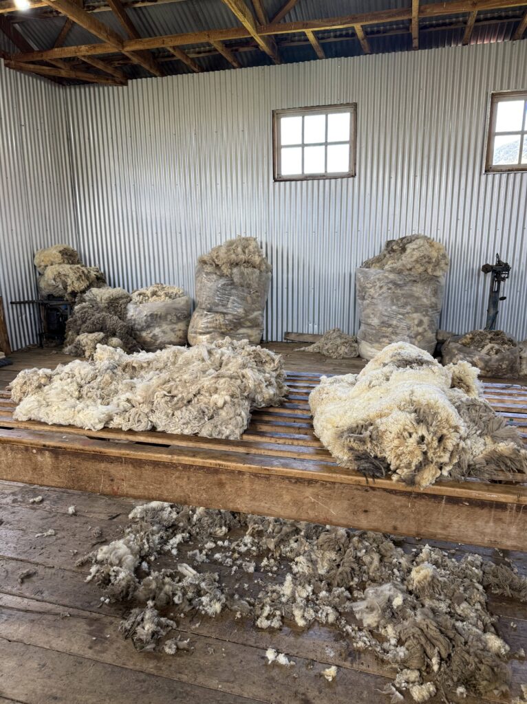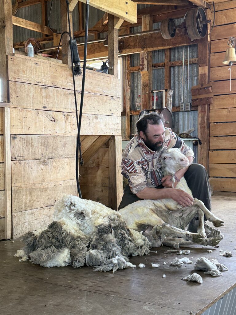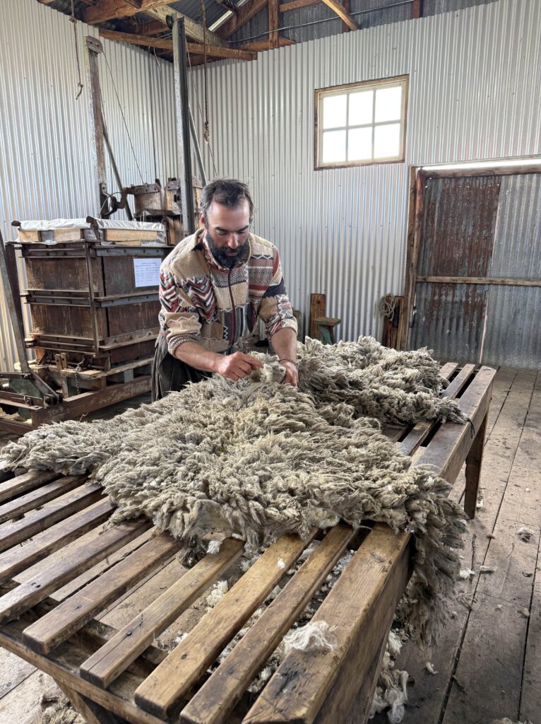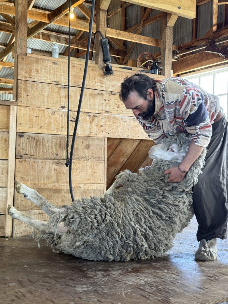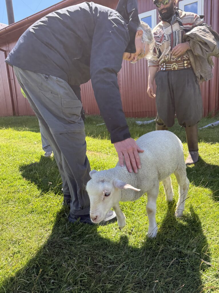 With full bellies we headed over to the sheep enclosures where we got a fun sheep herding demonstration with the two dogs we had met earlier. Tomás took us to the sheering barn next where all the rams were gathered. He grabbed one, put it on its butt, and sheared the entire ram in a few minutes. All the wool was connected in one piece when he was done. It was incredibly impressive since the rams are so large and strong. The ram seemed to enjoy the shearing once he was on his back. Tomás showed us how they process the wool, and how to tell high quality from low quality. It was interesting and informative. There was one stray sheep that seemed to like Jeff and followed our group as fast as it could for our afternoon.