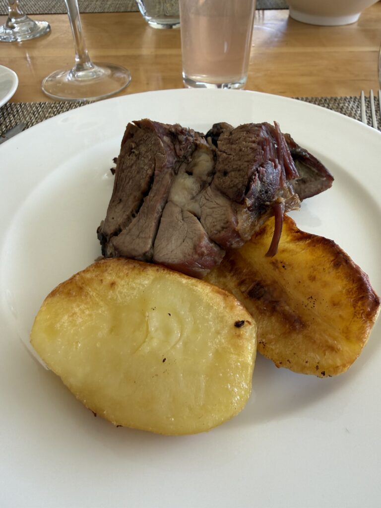 Just when we thought our day couldn’t get any better we were welcomed back inside for lunch. They served more wine, beer, rhubarb juice and water to drink. Lunch was huge pieces of smoked lamb, crunchy potatoes, salad, and chimichurri sauce. Nick was delighted to have both his and my flan to finish off the meal. We felt spoiled as it was just our group in there. The ranch also had a big group there at the same time as us, but they timed all of the activities in such a way that we never did the same thing at the same time. It made us feel like we were the only guests, which was so fun.