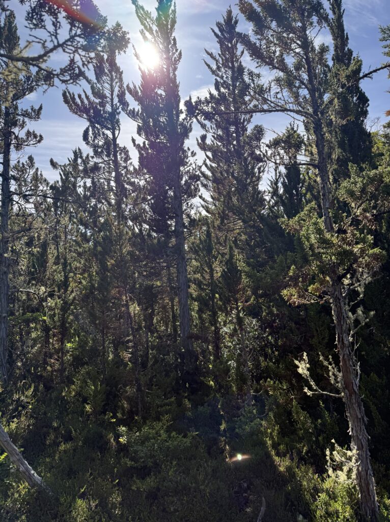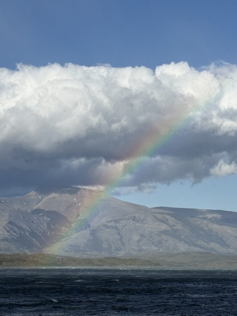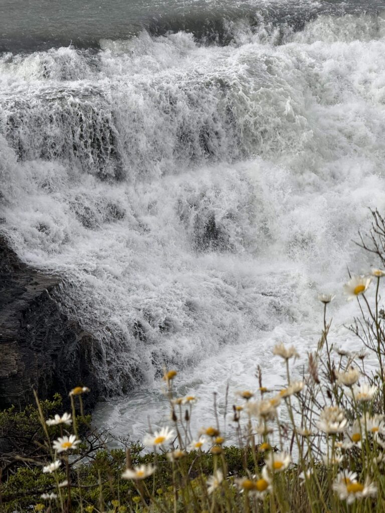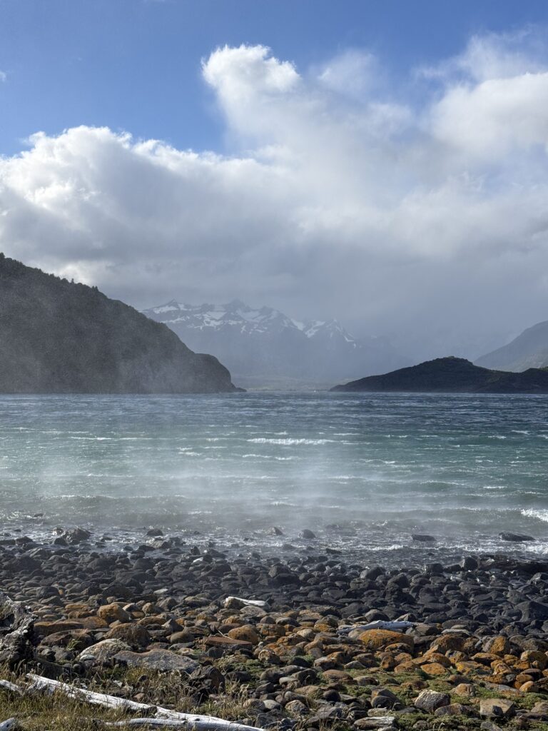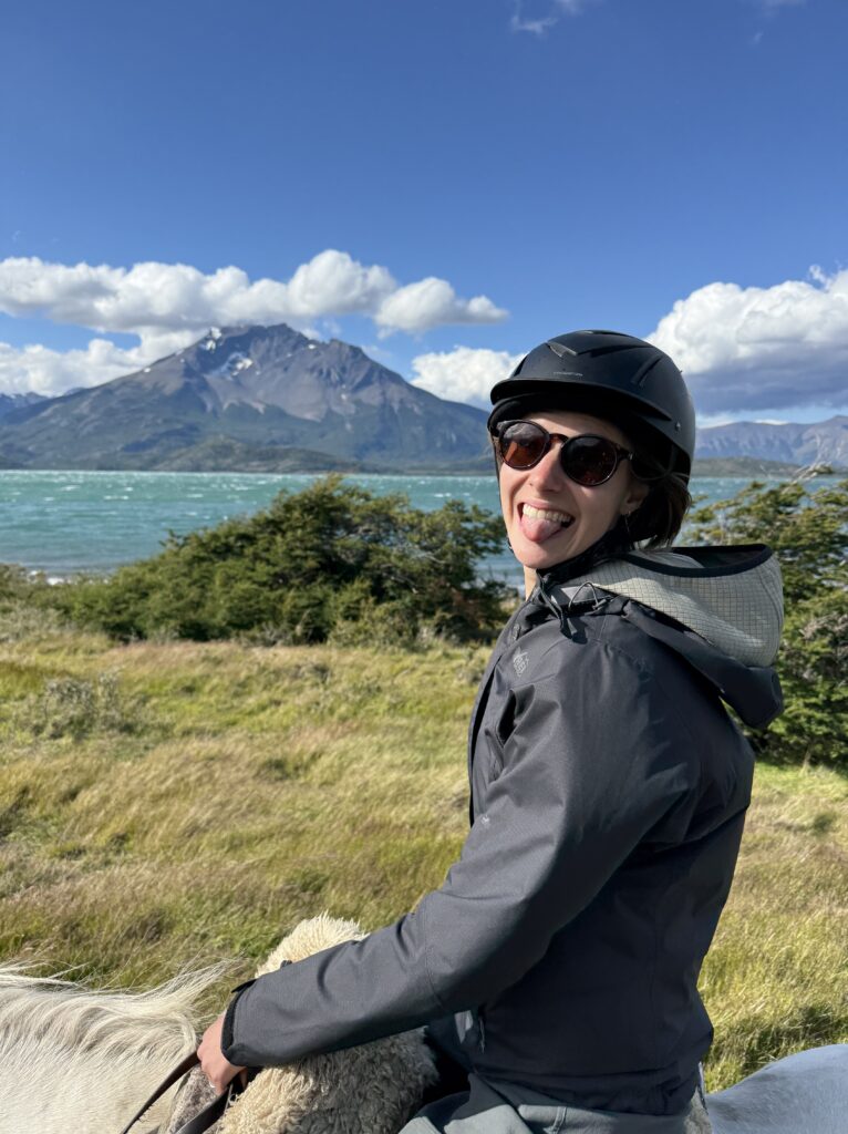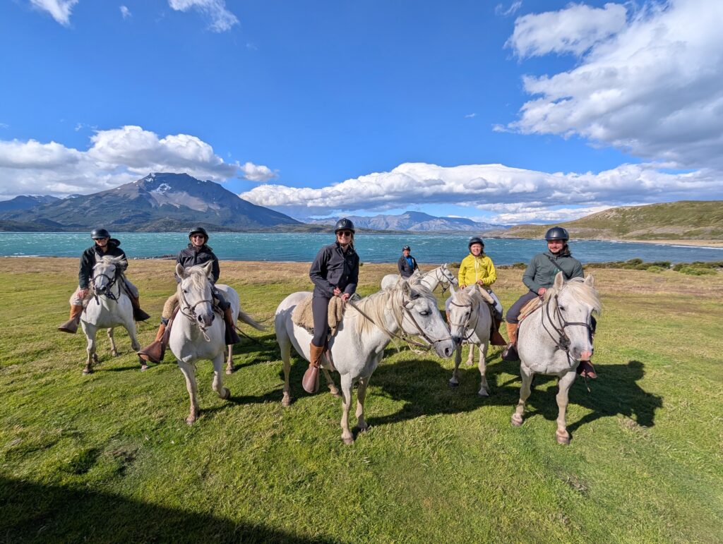 Our horse back ride this afternoon took a different route than we had done before. We went mostly on the gravel road which the horses seemed to dislike. Any small patches of grass they found they’d walk on like they were playing ‘the floor is lava’. Like the day before, we went through some forested areas, saw some wood peckers, picked and ate calafate berries as we rode, and saw magnificent ocean views. At one point we all lined up with our horses by a cliff side to get our photo taken. Tomás was getting ready to take our photo when his leather jacket suddenly blew off of his horse’s back, spooking the horse instantly. A few of the horses also got scared, but their riders were good at keeping hold of the reins and not letting them move too much. The same could not be said for me and my horse. My horse immediately jumped up and made a run for it around the group. My instinct was to hold on for dear life and get Tomás to help me. Oops. To be honest I wasn’t that nervous on the horses up until that moment, but I was a bit nervous for the rest of the riding.