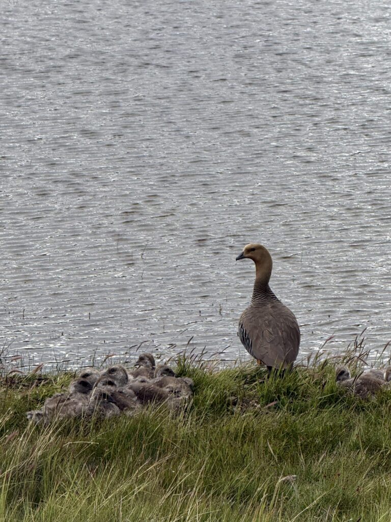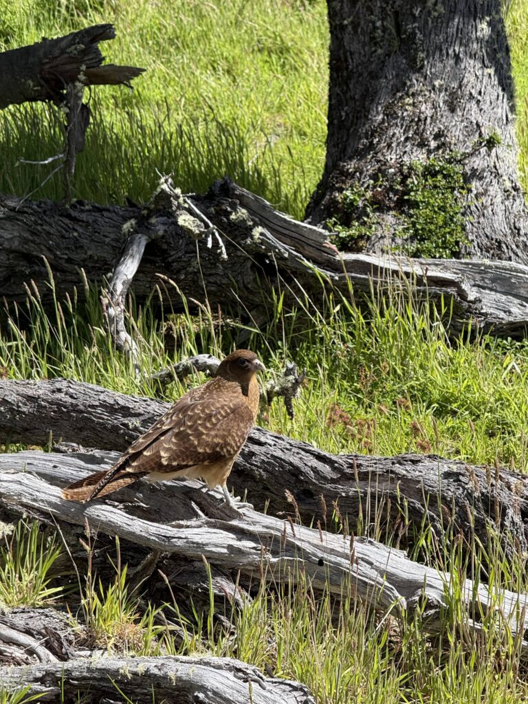 Our van drove around the east side of the national park where we saw an injured guanaco, some healthy guanacos, geese and goslings, ducks and ducklings, swans and baby swans. 2 of the other jeeps that were out at the same time hitting the same areas saw 1-2 pumas during the day. One of our attempts to find one was us hiking for 1.5 hours through the grasslands. We did not see one, but we did see a playful fluffy fox. After returning to our van we saw a condor on the ground, black faced Ibis, and more baby birds. It was great day for bird watching. We stopped at waterfall and then the cafeteria for lunch.