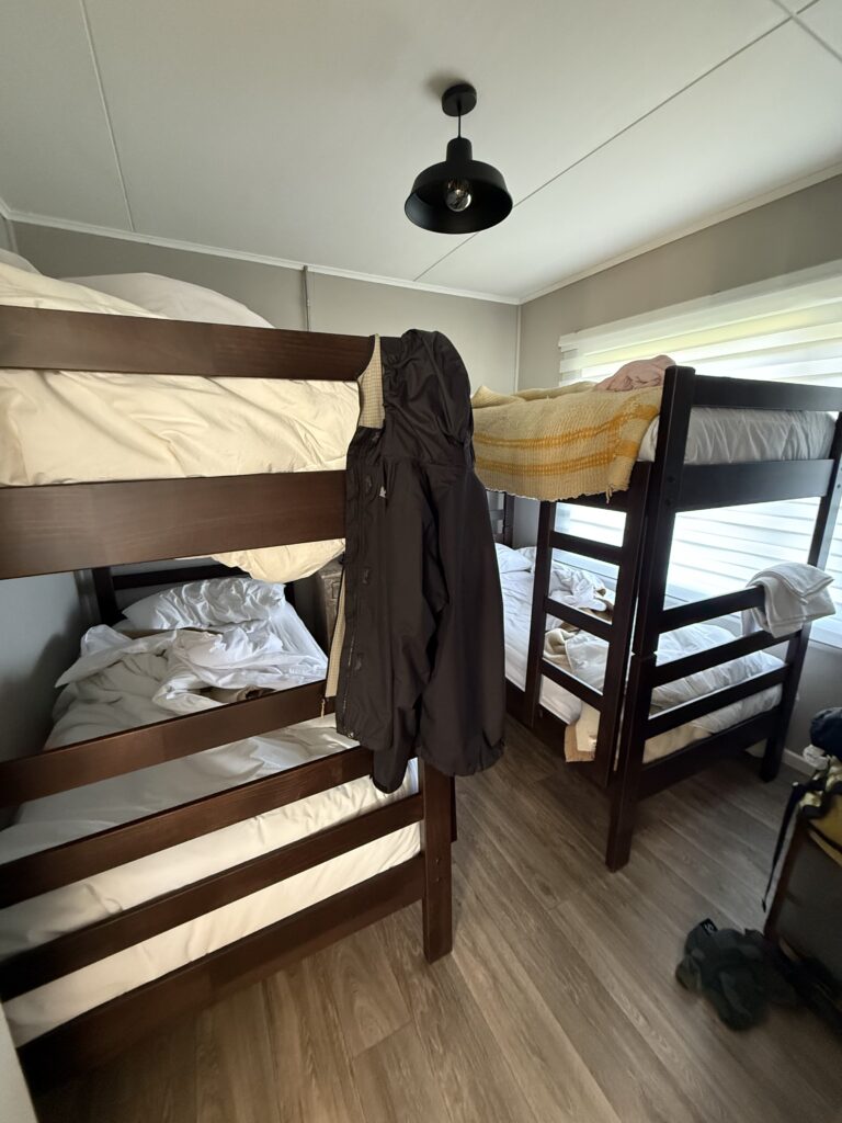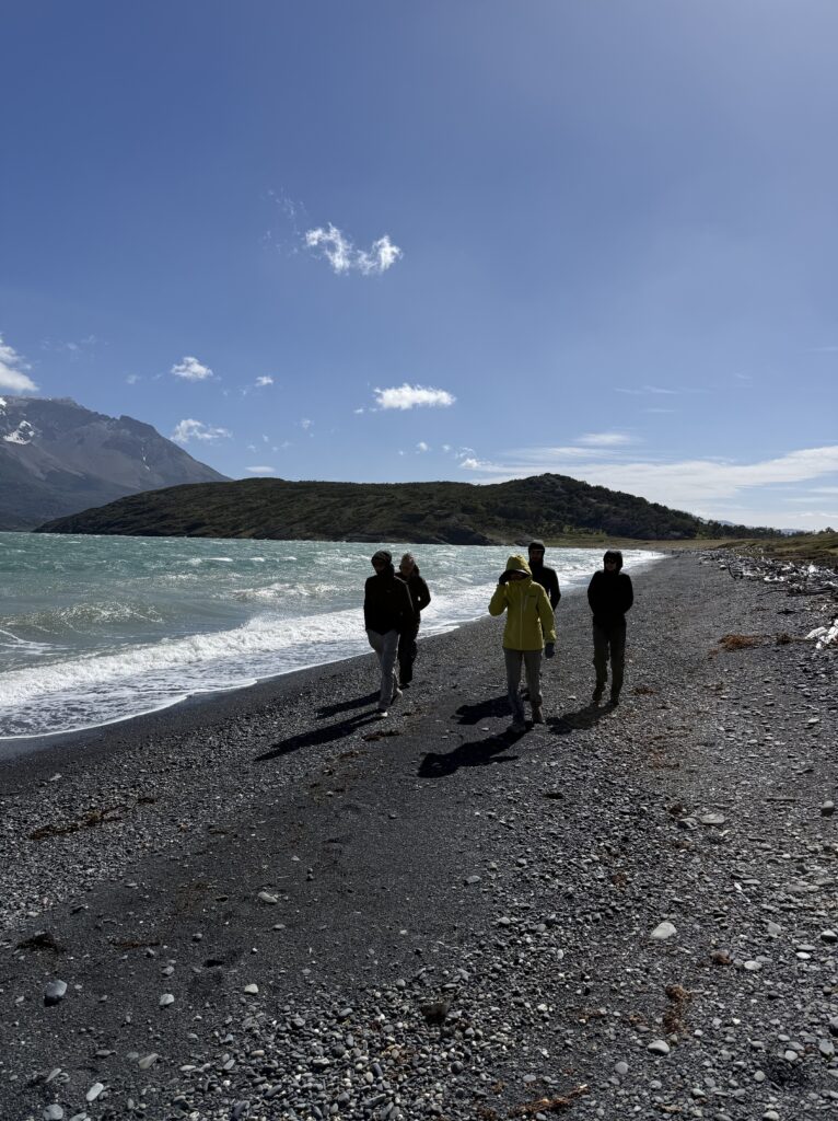 Since it was New Year’s Eve we enjoyed a variety of alcoholic beverages as well. Deb had some local red wine, Gabe and Jeff had some beers, and Nick and Emily drank mostly water as Emily was not feeling too well. I had a pisco sour and a calafate gin and tonic. Since we don’t drink that often those two drinks were enough for me to feel warm and bubbly on New Year’s Eve. Tomás also had us try some calafate flavored moonshine that was super delicious. Our cabin had a little fireplace that we did not have to use. Deb and Jeff got their own master bedroom with a private bathroom. The rest of us shared one room with two bunk beds. It felt like an old school sleepover. We all said Happy New Year’s from bed and talked lots about how amazing the experience had been so far.