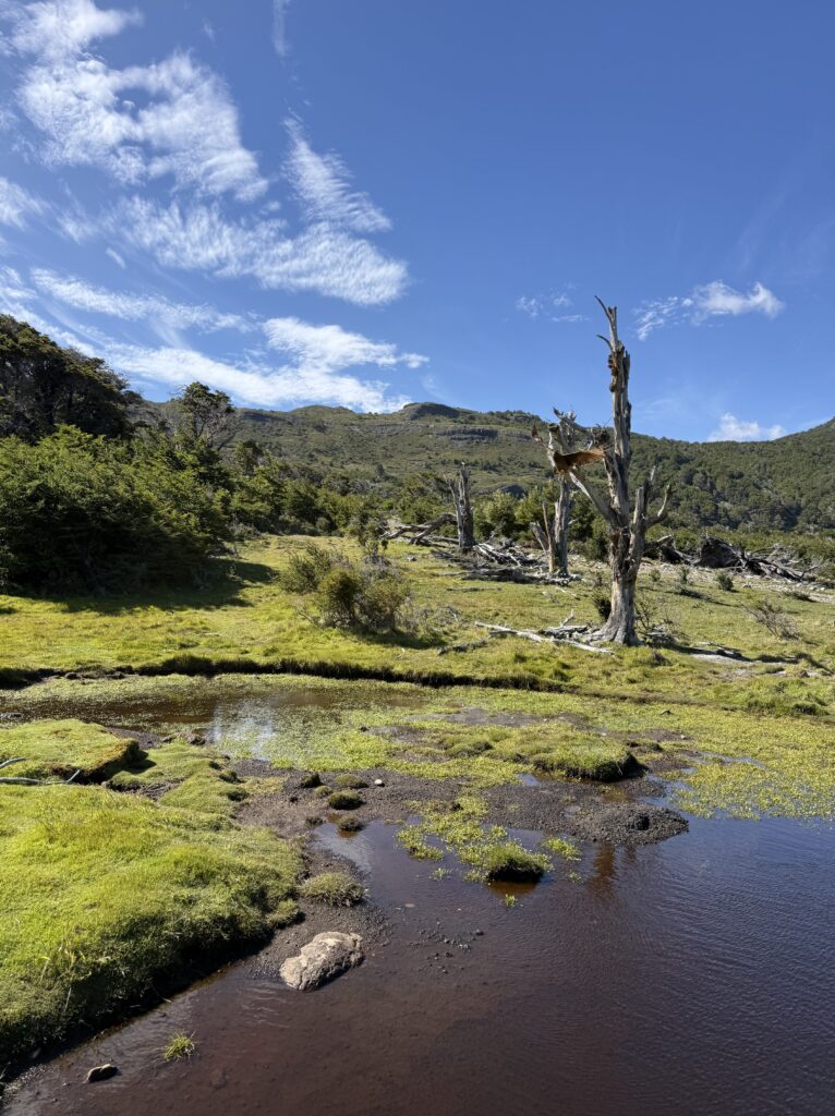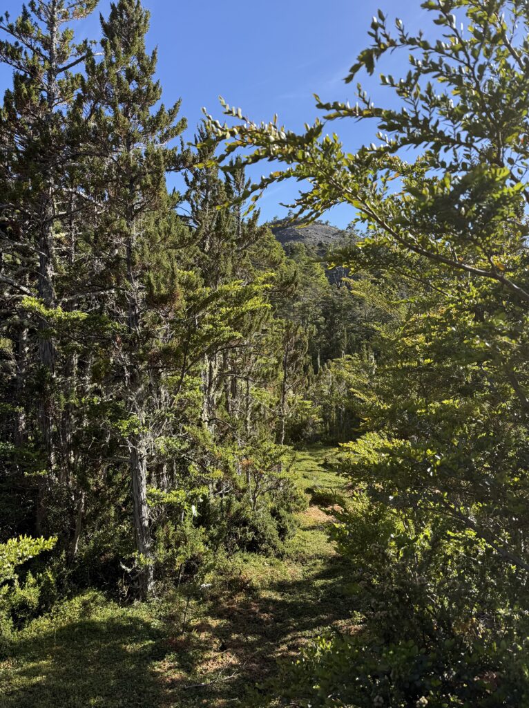 Tomás piled us into his jeep and off we went driving through the forest to get to the start of a short hiking trail. The hike was nice; it went through forest then opened up to show 360° views. We could see an aerial view of the area we started at, the fjord we cruised through, and behind us were mountains. It was sunny with many birds and rabbits everywhere. The wind was pretty strong that day, as usual, but we had gotten accustomed to that after spending so much time in the national park.