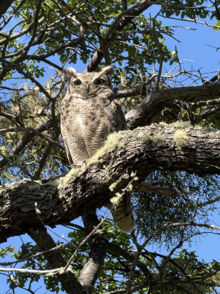 It’s not often I wake up the morning after New Year’s Eve not hungover, so waking up in our cabin with no headache was fabulous. For breakfast we were served eggs, avocado, toast, jam, cheese, ham, juice, coffee, and fruits. Once everyone was ready we left the cabin around 9:15am to start our morning hike to a waterfall. Tomás was with us, as usual, and we headed off across the grassy field behind the cabin that had small bushes and dozens of leaping rabbits. Eventually the hike was through a much more forested area where we saw a horned owl perched in a tree fairly close by. He watched us intently and it was amazing to see one in broad daylight. We took a detour where Tomás showed us what it felt like to walk on thick peat and moss, like walking on a memory foam pillow. He also showed us some old cave paintings and an area where they grow many varieties of fruits such as plums.