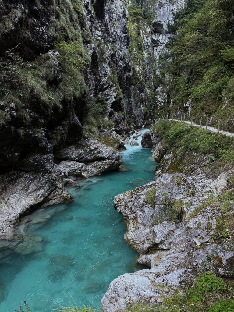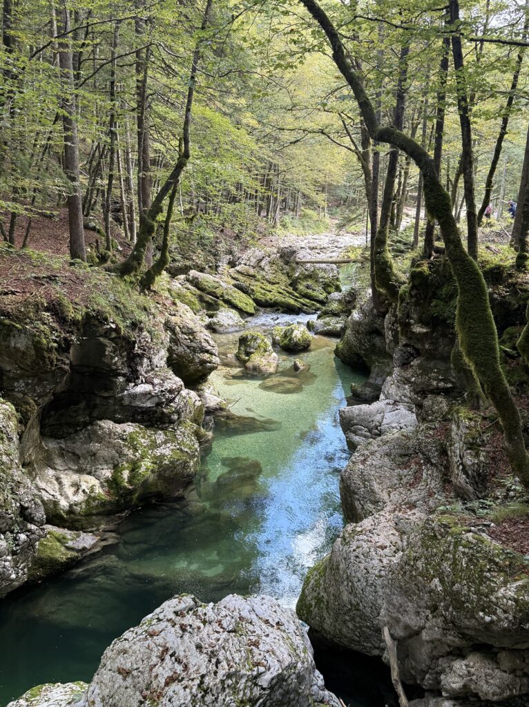 Vintgar Gorge was incredibly busy and I could see why in my itinerary notes I had originally wanted us there for opening. The gorge does a good job at enforcing strict entry times (it’s down to the minute and a machine scans your ticket to let you in). That way there are only a few people starting at once.