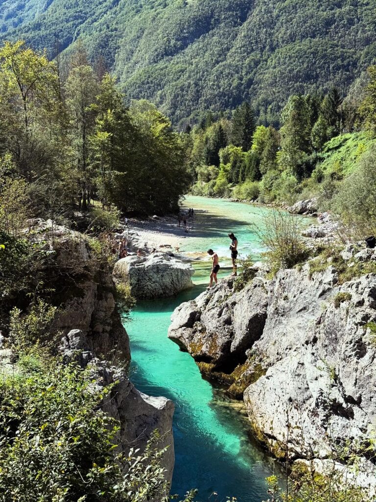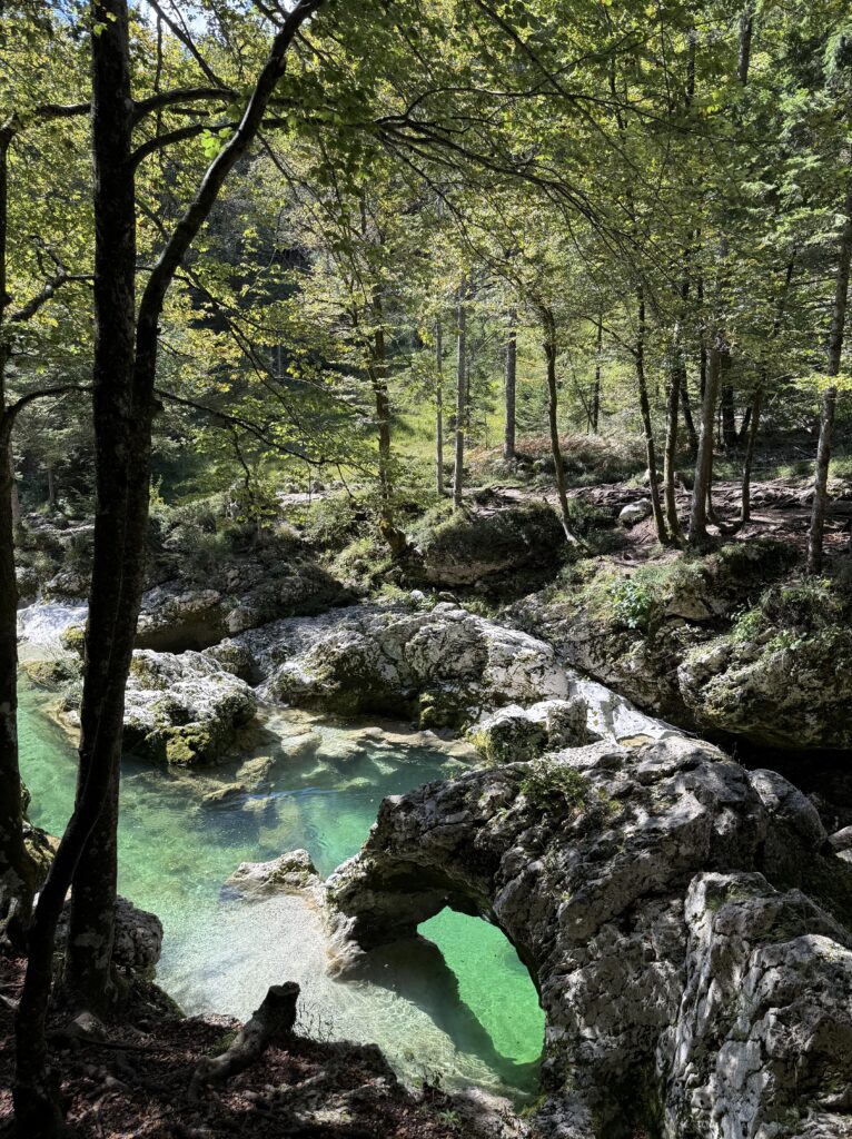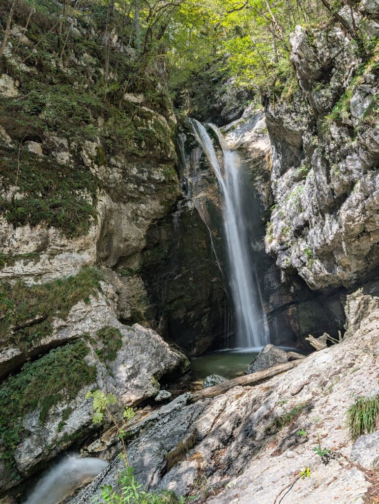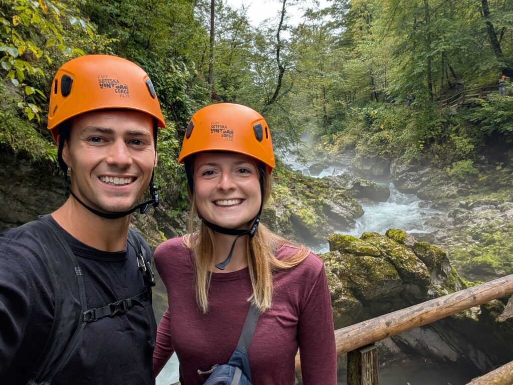 It was short drive the next morning to get to Tolmin Gorge. We arrived shortly after opening because I did not want to make the same mistake we did at the other gorge. The gorge was a few kilometers long, and had a simple path that led around different areas. We had it all to ourselves and it was gorgeous. The highlight was a strawberry shaped rock, wedged in the gorge with a waterfall behind. We liked the area a lot and got to see it from above as well.