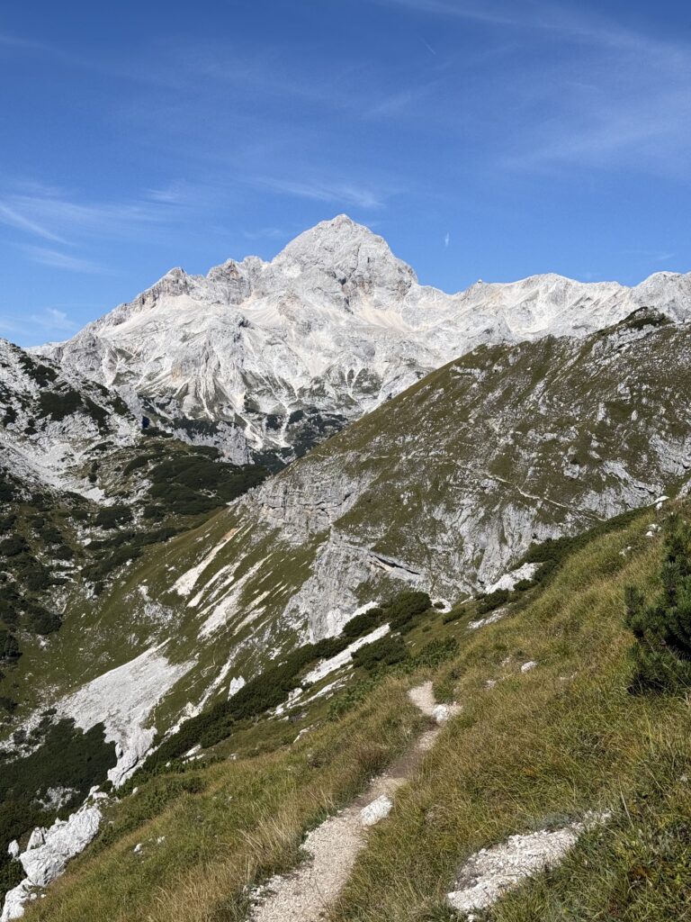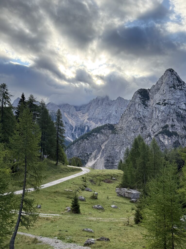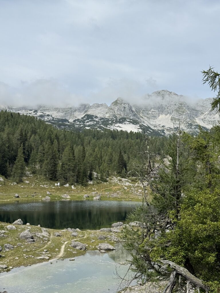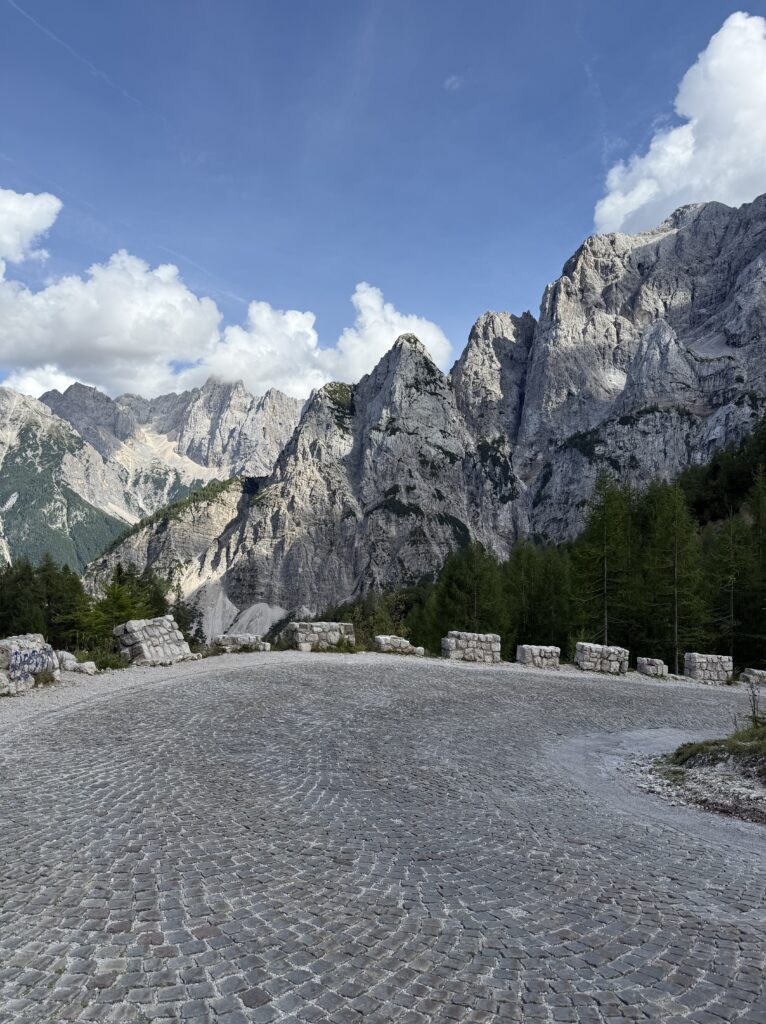On our way to Vrsic Pass we stopped to do the Slemenova Špica trail. The drive to get there was incredible with mountain and forest views along a windy road. Our hike was about 6km and took 2.5 hours. There were no other hikers on our way up, but by the time we were making our way down there were many groups starting. It was a short amount of uphill and a lot of flat on top of a saddle area. The trail was gravel at first, but then dirt through the forest. The views of the valley were stunning. At the top section there is sometimes water that reflects the surrounding mountains, but it was all dried up when we were there. The peak had 360 views of the mountains and valley. Unfortunately, we could not stay up there for too long as every sheep in the area decided that was their toilet. There was a hilarious amount of sheep poop at the peak and hardly any anywhere else on the trail.