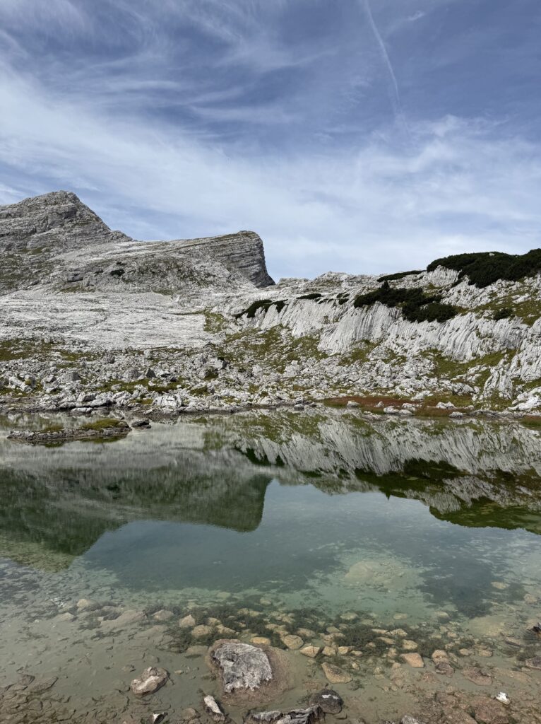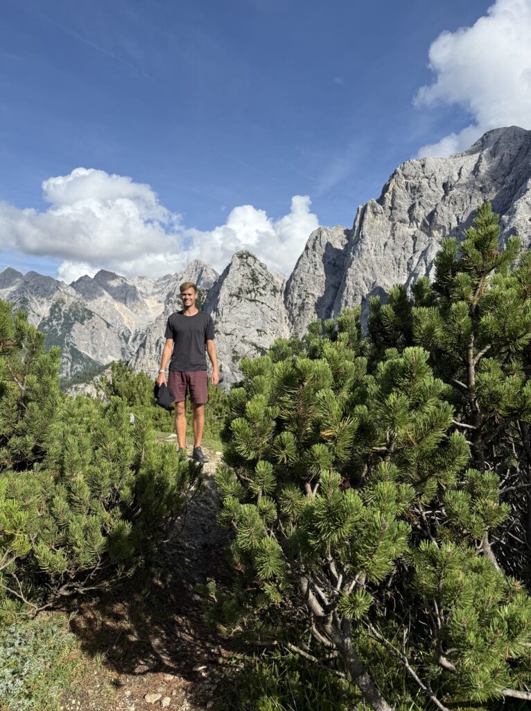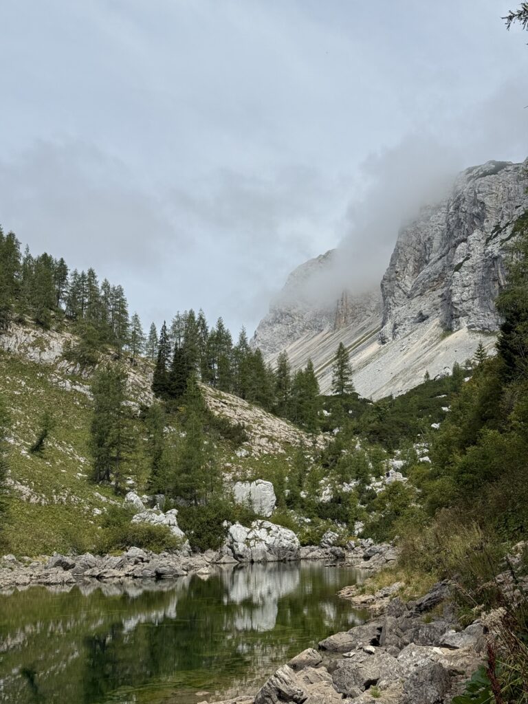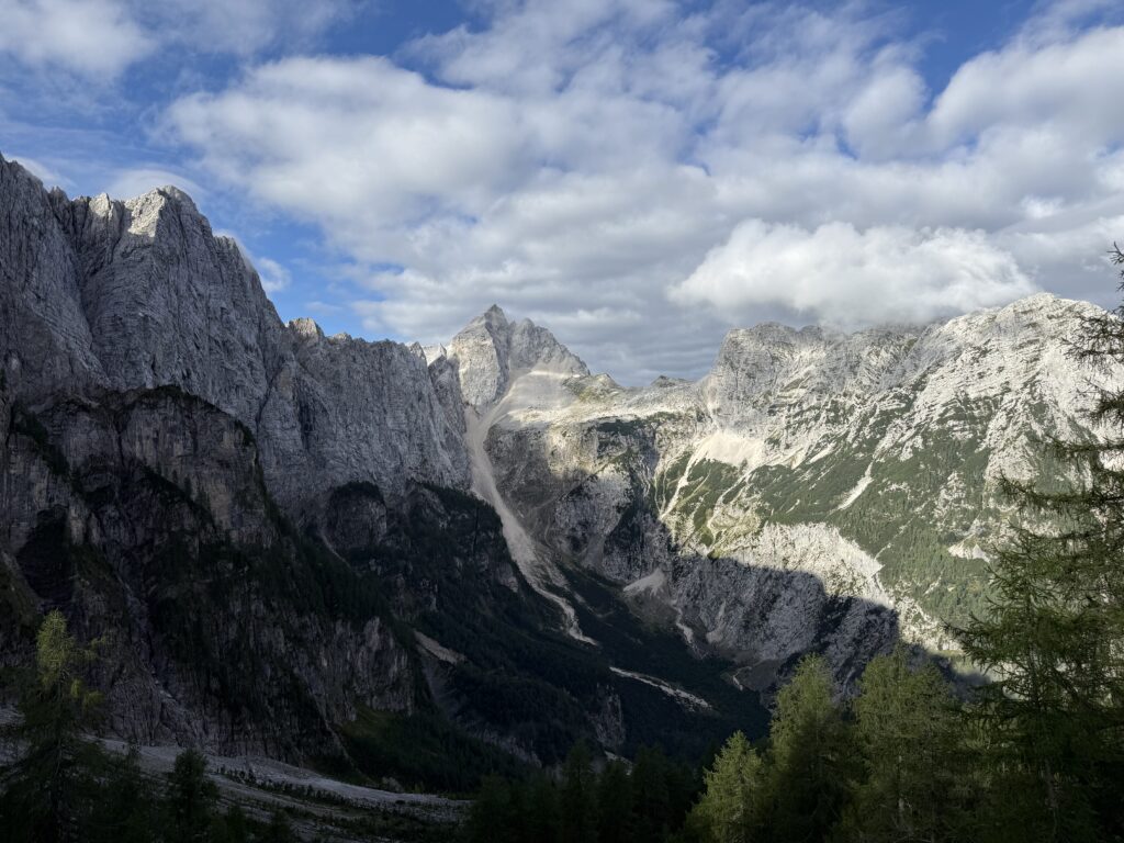 On our way to Vrsic Pass we stopped to do the Slemenova Špica trail. The drive to get there was incredible with mountain and forest views along a windy road. Our hike was about 6km and took 2.5 hours. There were no other hikers on our way up, but by the time we were making our way down there were many groups starting. It was a short amount of uphill and a lot of flat on top of a saddle area. The trail was gravel at first, but then dirt through the forest. The views of the valley were stunning. At the top section there is sometimes water that reflects the surrounding mountains, but it was all dried up when we were there. The peak had 360 views of the mountains and valley. Unfortunately, we could not stay up there for too long as every sheep in the area decided that was their toilet. There was a hilarious amount of sheep poop at the peak and hardly any anywhere else on the trail.