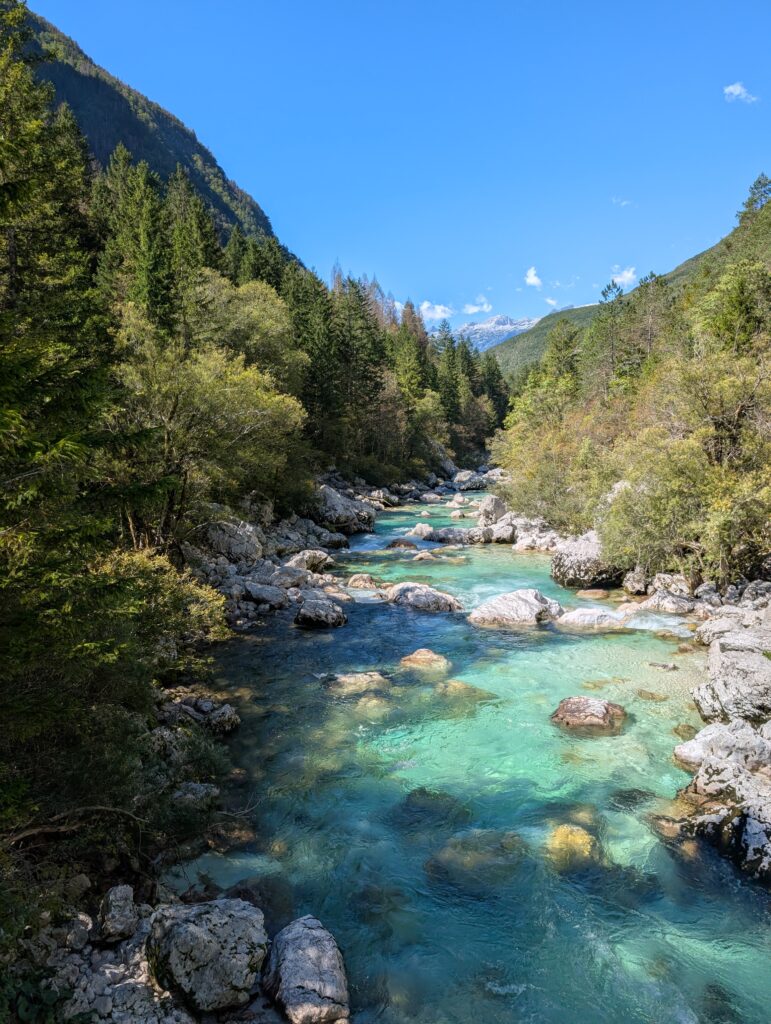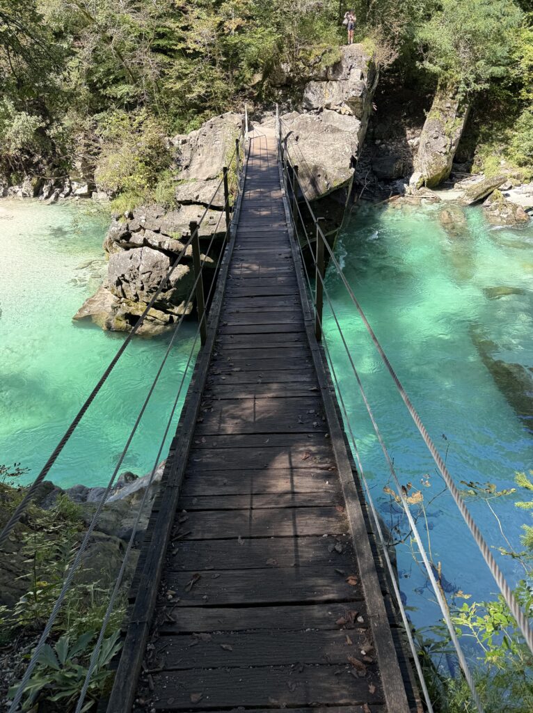 The next day was our first big hike of the road trip and we were excited for it. We completed the entire length of the 27.6km trail in just under 7 hours. The trail was mostly flat and unlike any trail I had done before. We parked at the higher trailhead so that we would have a slight downhill ending in Bovec village. The trail was generally along the Soca river in the forest, along the road, through small neighborhoods, by farms, and through campgrounds.