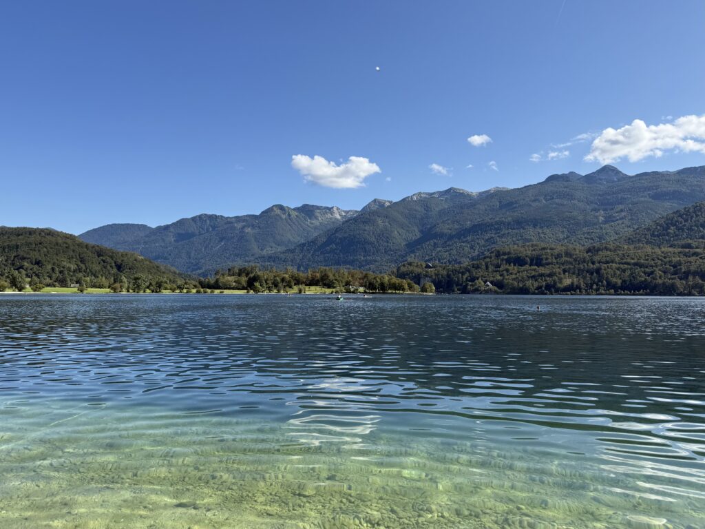 After the hike we drove back down the mountain to get to Lake Bohinj. The lake had a wonderful path on one side following along the shoreline. Many people were swimming, fishing, and boating there. People even landed in the park area from paragliding. Nick enjoyed a swim while I watched our belongings and an adorable toddler play with his dad in the water. We could tell that place was adored by locals and tourists.