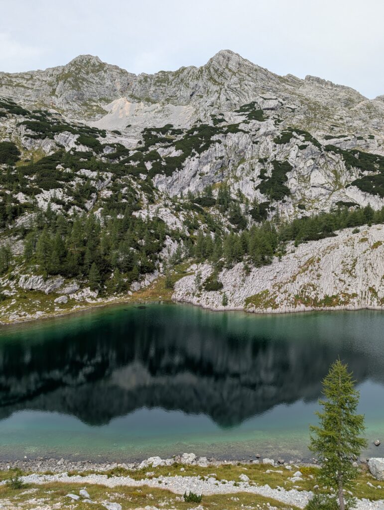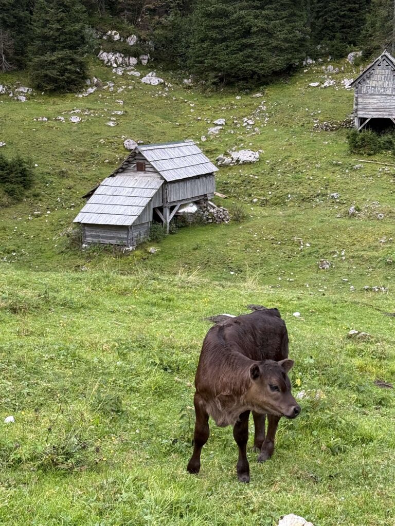 Our last big hike of the roadtrip was 23.7km and took us around 7 hours to complete. There are several routes that pass through Triglav Lakes Valley. We did a loop from Planina Blato that included the Triglav Lake Valley as well as a higher valley that ran parallel to it. We opted for a direction that meant we would get all of the uphill done steeply and right at the start. That meant we ended with more flat and gradual down, trying to keep our knees intact enough to hike for years to come. There were many cows and not many people to start. Only one section of the hike was busy, but that section was one where it had many trails crossing and people could be doing any number of trails. The whole national park was like a spider web of hiking trails.