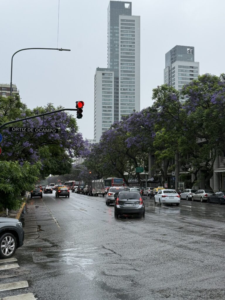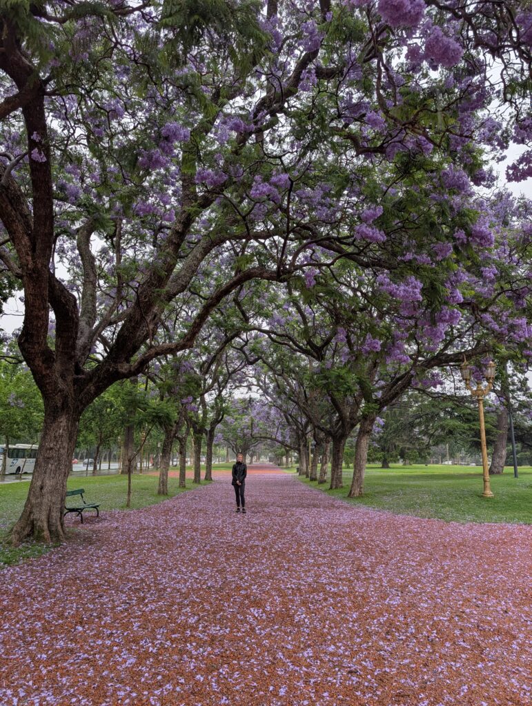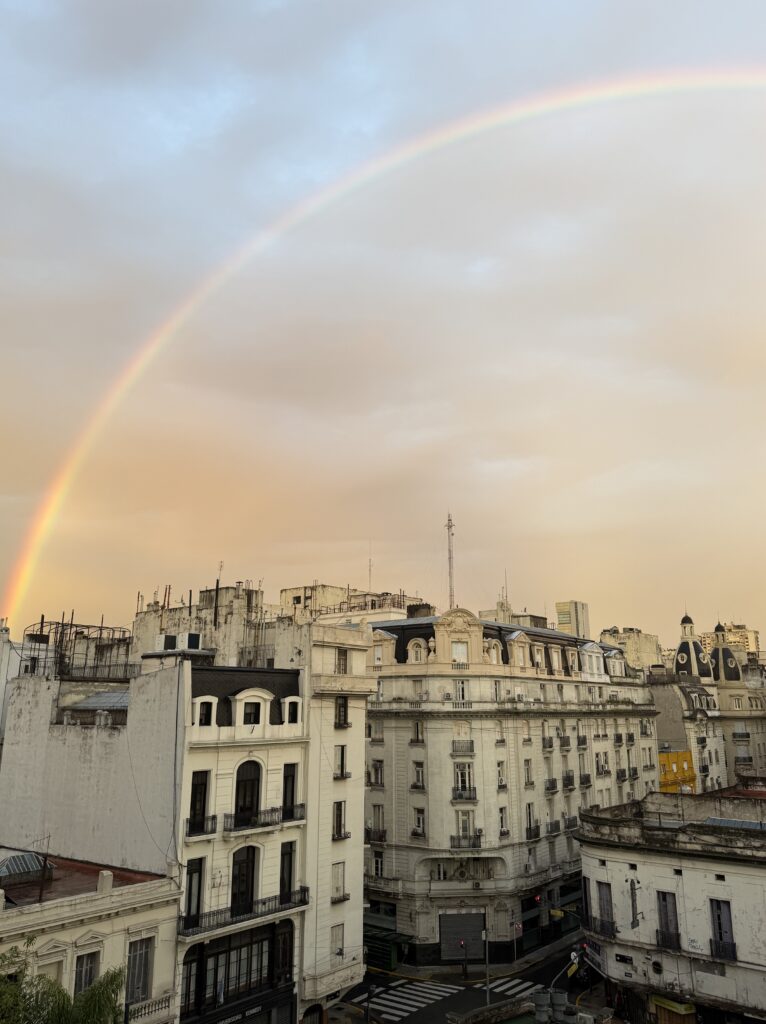 On our way back to get an empanada lunch we saw more gorgeous walkways with purple flowering trees and an open air market. Lunch was empanadas from La Cocina, and they were super delicious. We tried chicken, meat, onion and cheese, and one called a pikachu, which Nick had a hard time identifying the ingredients for. It was a great first full day exploring the city. The day ended with watching a beautiful rainbow from our apartment window.