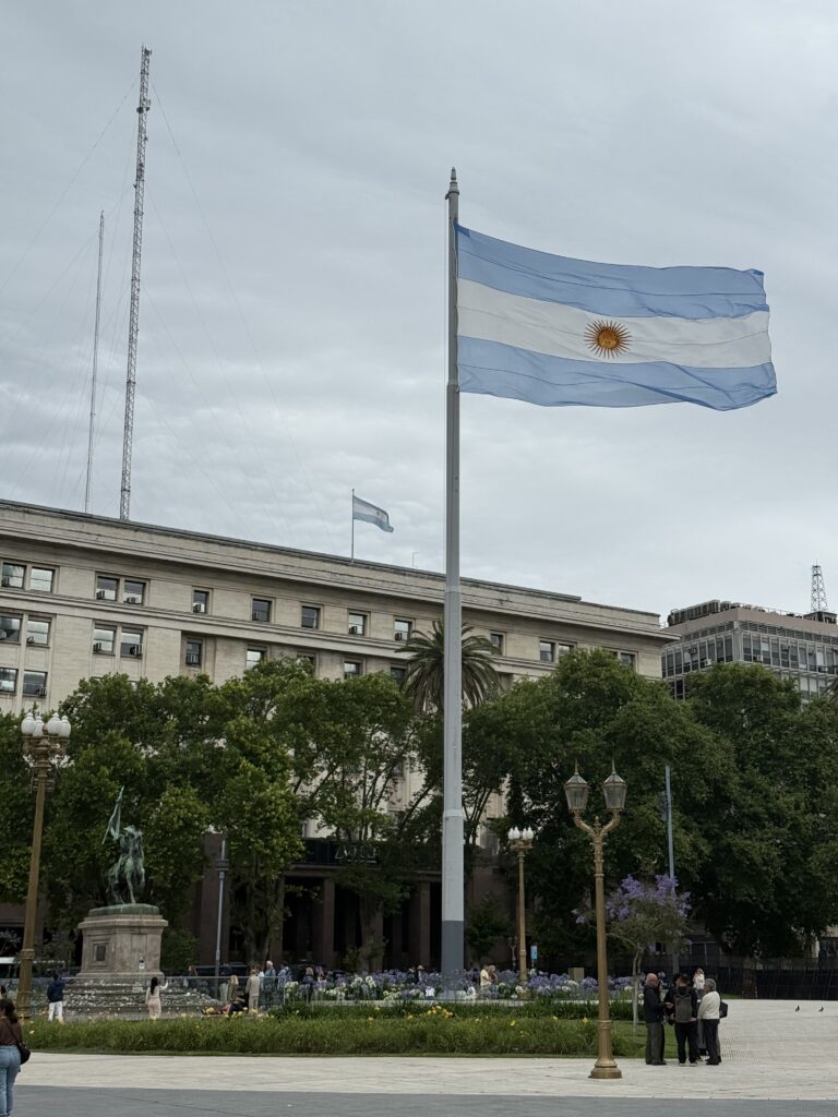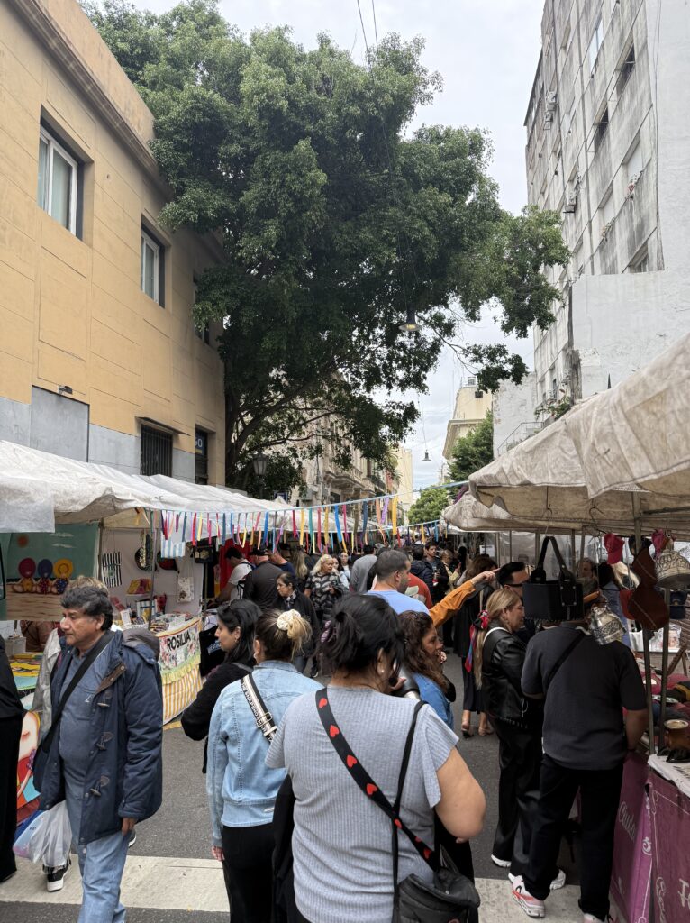 The day started off by visiting the San Telmo Fair, which only happens on Sundays. It was blocks and blocks of stalls. There were many kinds of souvenirs available, including belts, hand-knit items, paintings, jewelry, and wood carvings. There were other types, too, but after about 1 hour of walking up and down the full main street they started to get repetitive. After the market we walked around Plaza de Mayo. There was a large flag, a cool red building, and some benches.