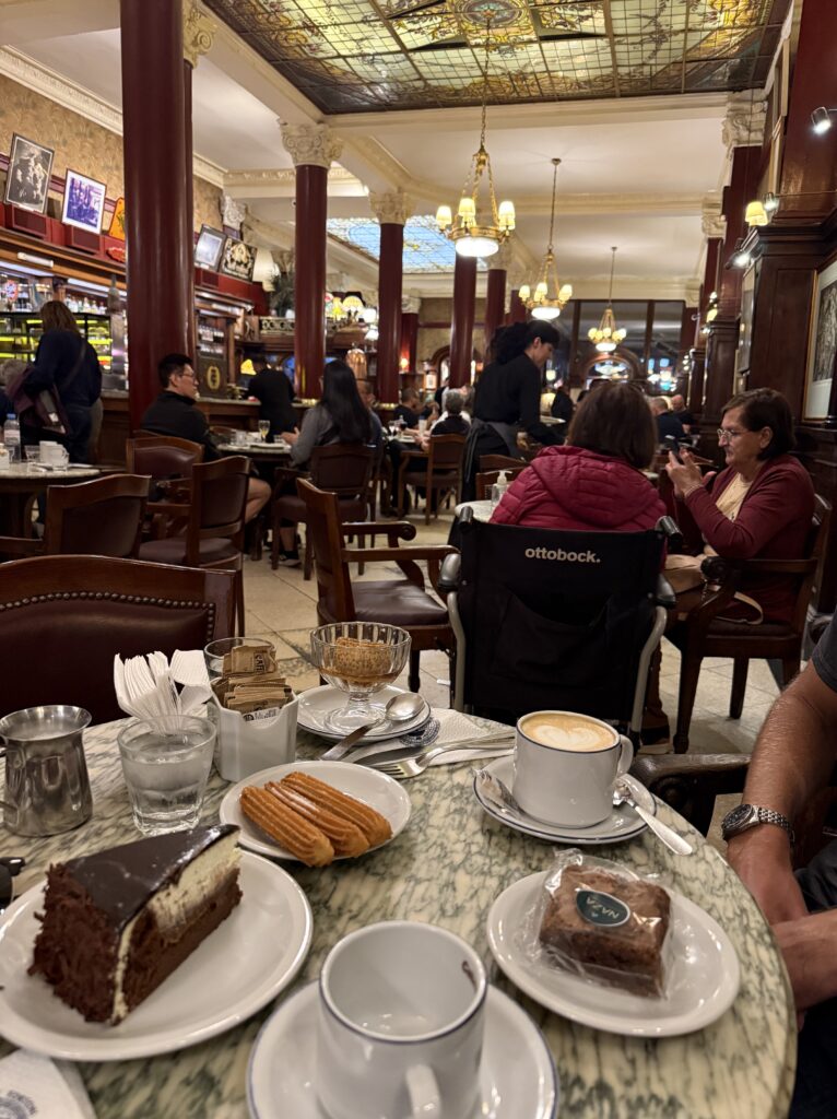 Once we felt satisfied by our visit to the square (which happened quickly due to my hunger levels) we walked over to Cafe Tortoni for fika. We got coffee with milk, hot chocolate, churros stuffed with dulce de leche, chocolate soufflé cake with Chantilly cream, a flan, and a brownie. Us Ralston’s definitely have a sweet tooth. Everything was good, but nothing blew us away, which is to be expected from a touristy spot like that. The building itself was cool and very old so that was the highlight of the experience.