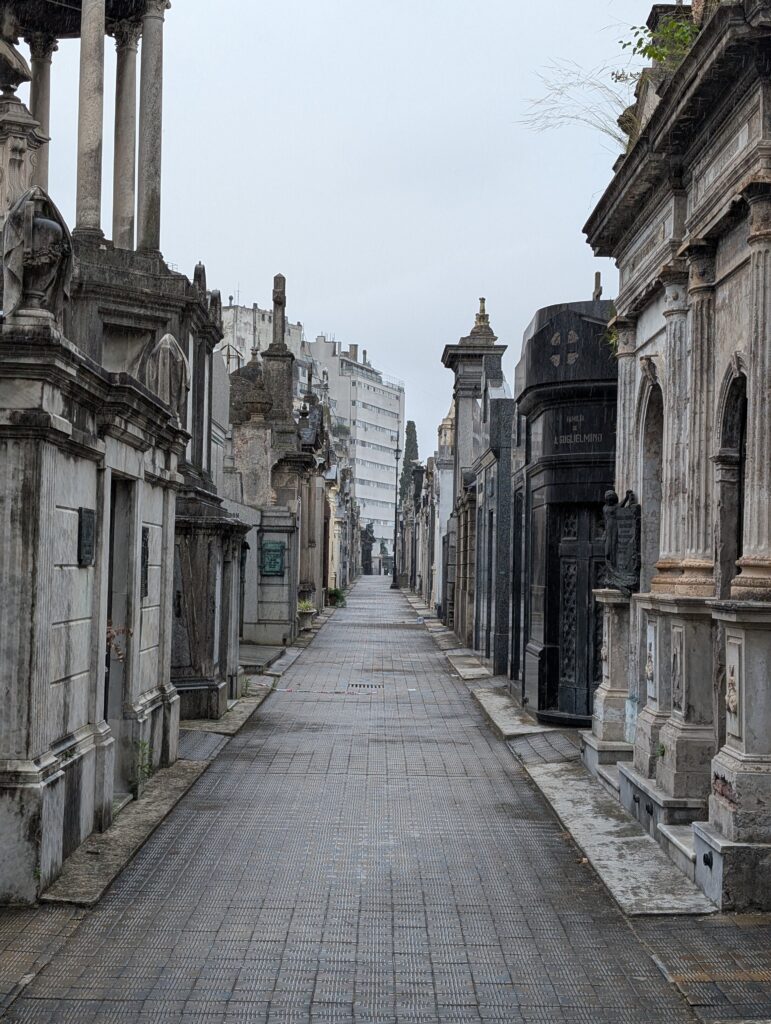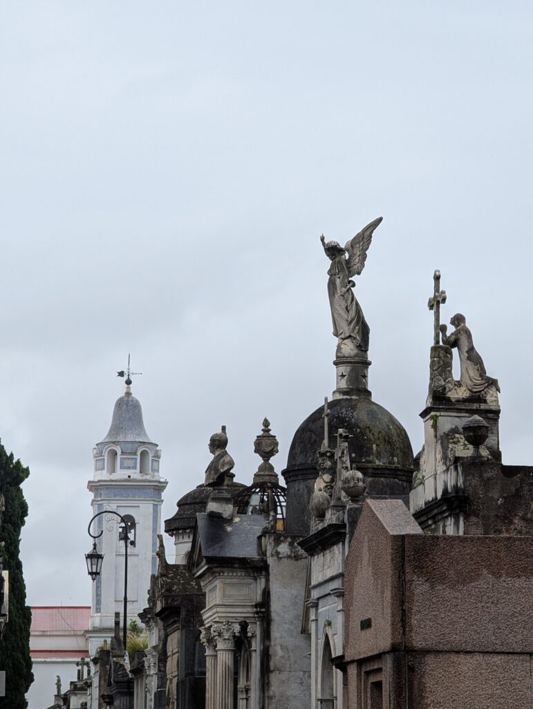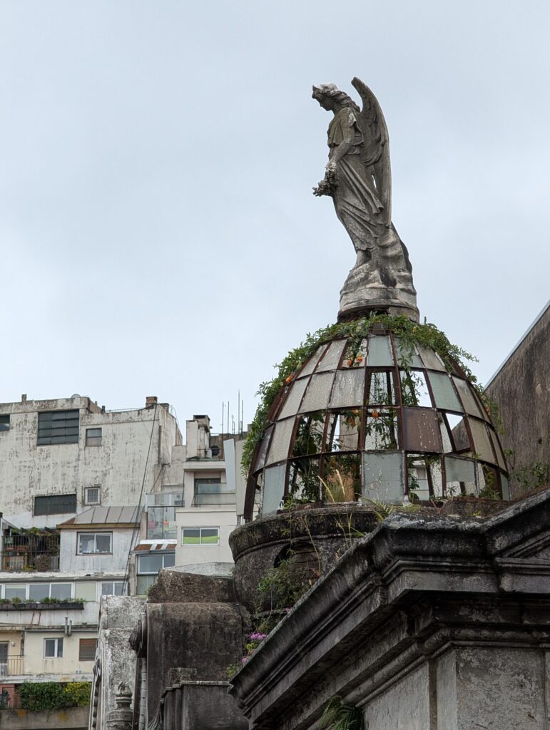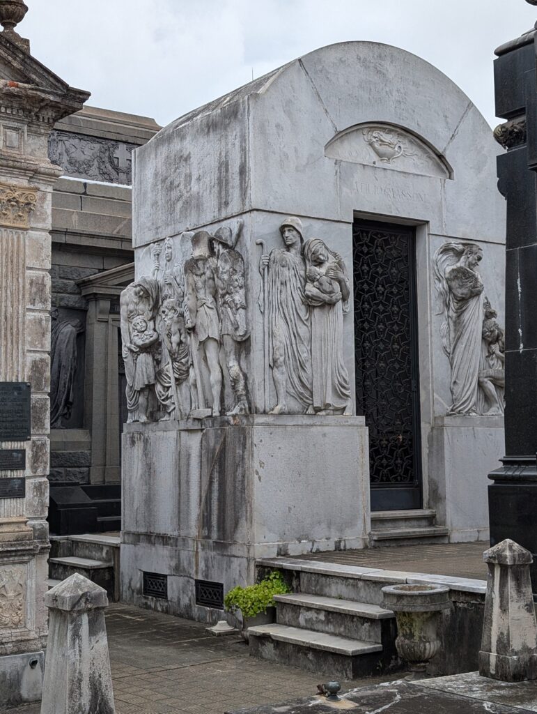 The real activity for the day was exploring Recoleta Cemetery, a large cemetery filled with family crypts of various levels of elaborateness where we spent about 1 hour walking around. Some looked more run down and others seemed to be more actively maintained. Inside the crypts (peaking in from the gated entrances) we could see that they were very deep, sometimes with over a dozen layers of coffins beneath the main floor stacked on top of each other. It seemed like the newest family members coffin would be at ground level and then a grate would expose the other coffins below. There were many beautiful sculptures, engravings and stained glass windows.
